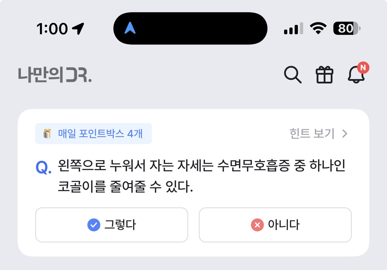 나만의 닥터 퀴즈 8월 26일 정답(왼쪽으로 누워서 자는 자세는 수면무호흡증 중 하나인 코골이를 줄여줄 수 있다)