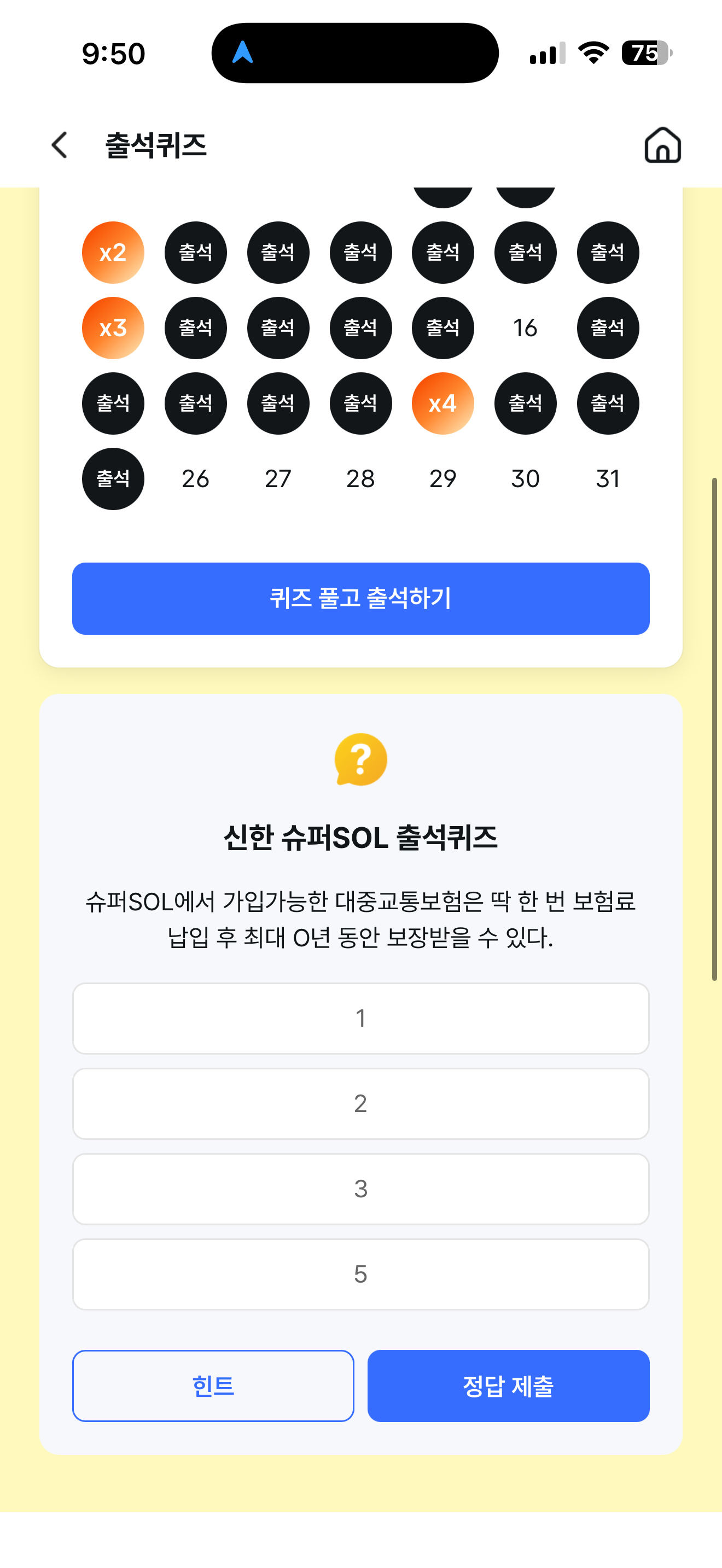 신한 슈퍼SOL 출석퀴즈 정답은 3 입니다