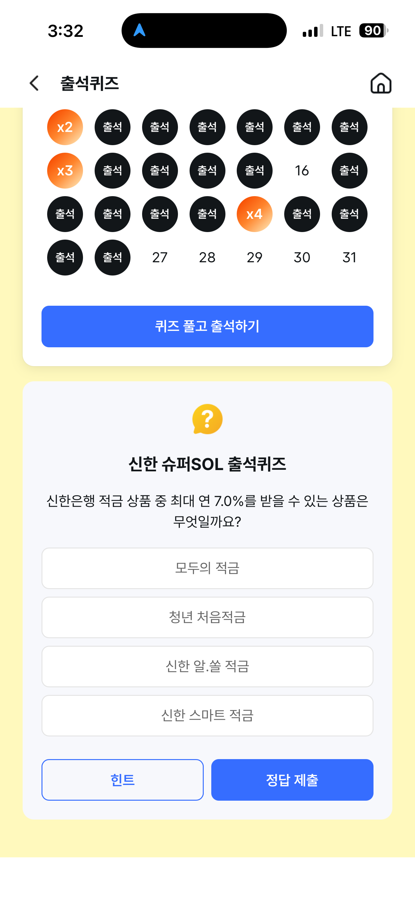 신한 슈퍼SOL 출석퀴즈 정답은 모두의 적금 입니다