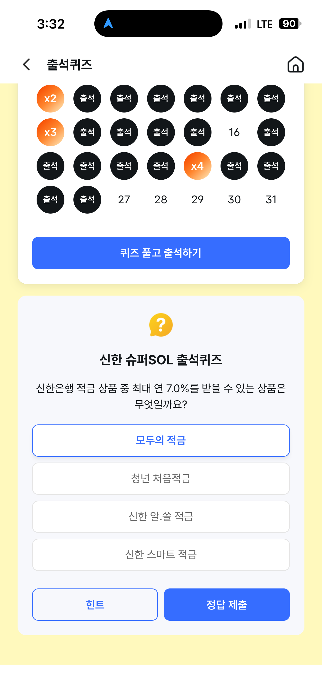 신한 슈퍼SOL 출석퀴즈 정답은 모두의 적금 입니다