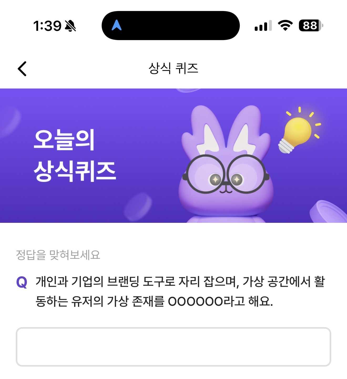 비트버니 오늘의 퀴즈 정답은 디지털아바타 입니다
