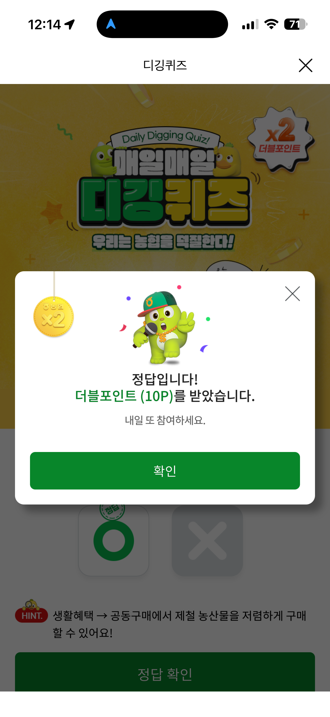 NH올원뱅크 디깅퀴즈 정답은 O 입니다