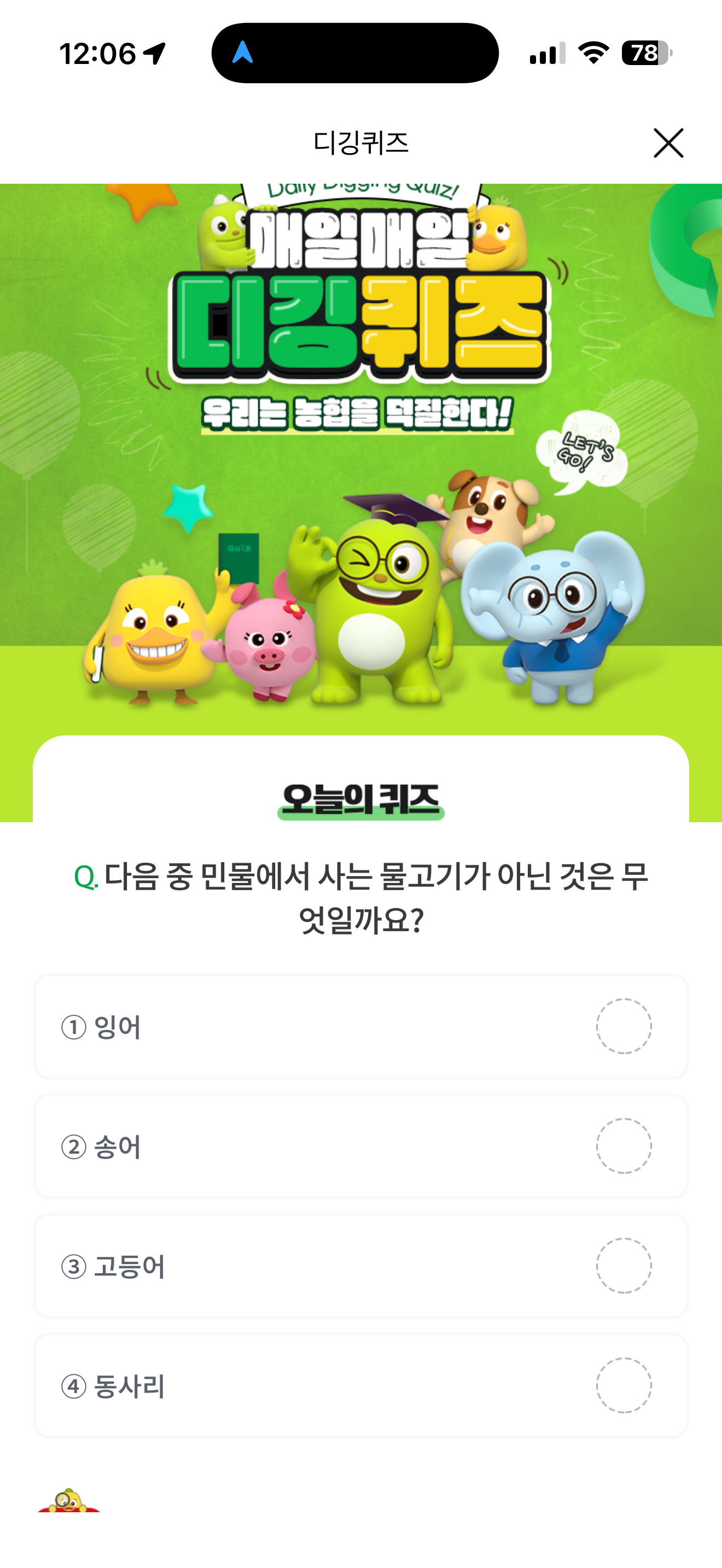 NH올원뱅크 디깅퀴즈 정답은 고등어 입니다