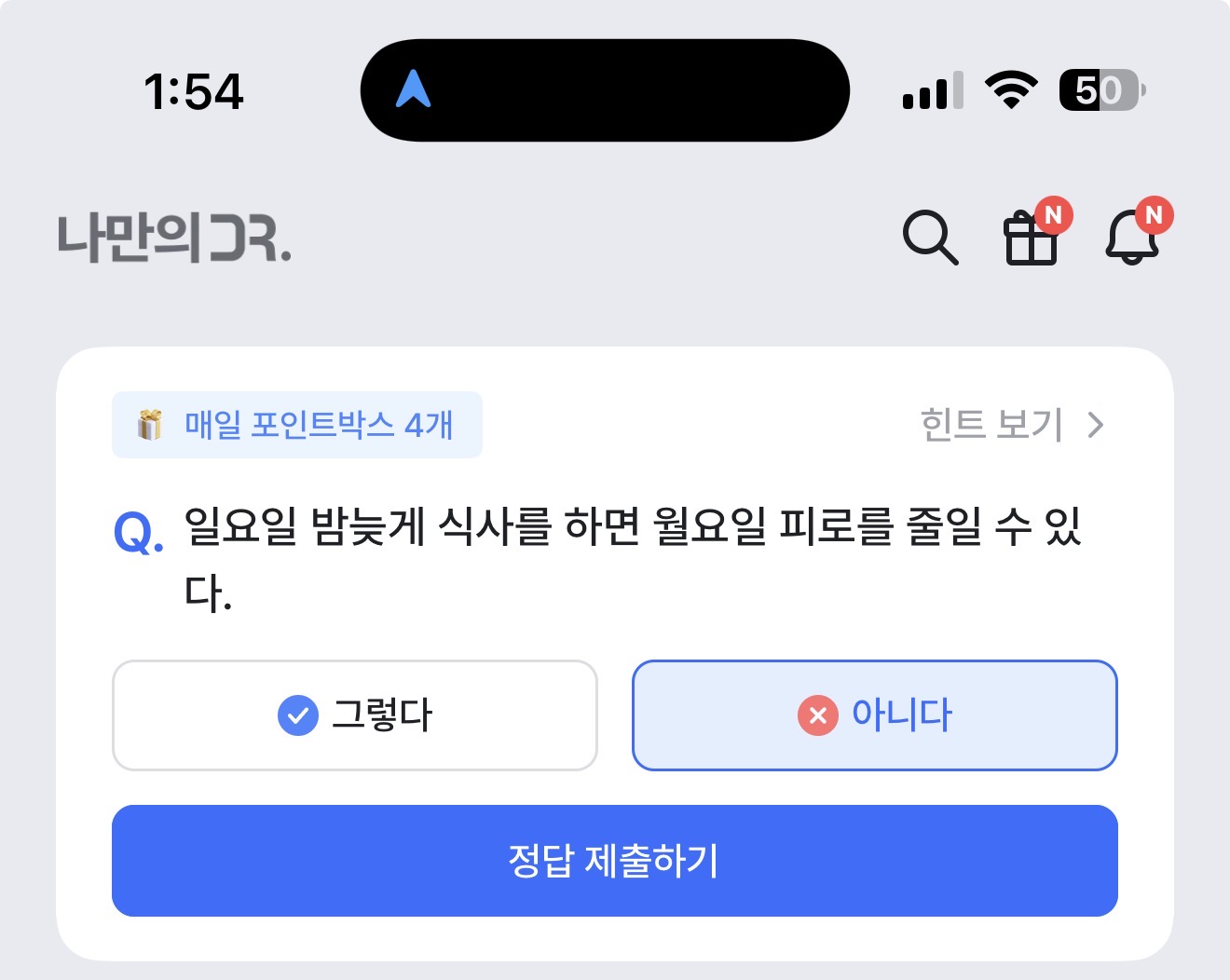 나만의 닥터 퀴즈 9월 7일 정답(일요일 밤늦게 식사를 하면 월요일 피로를 줄일 수 있다)