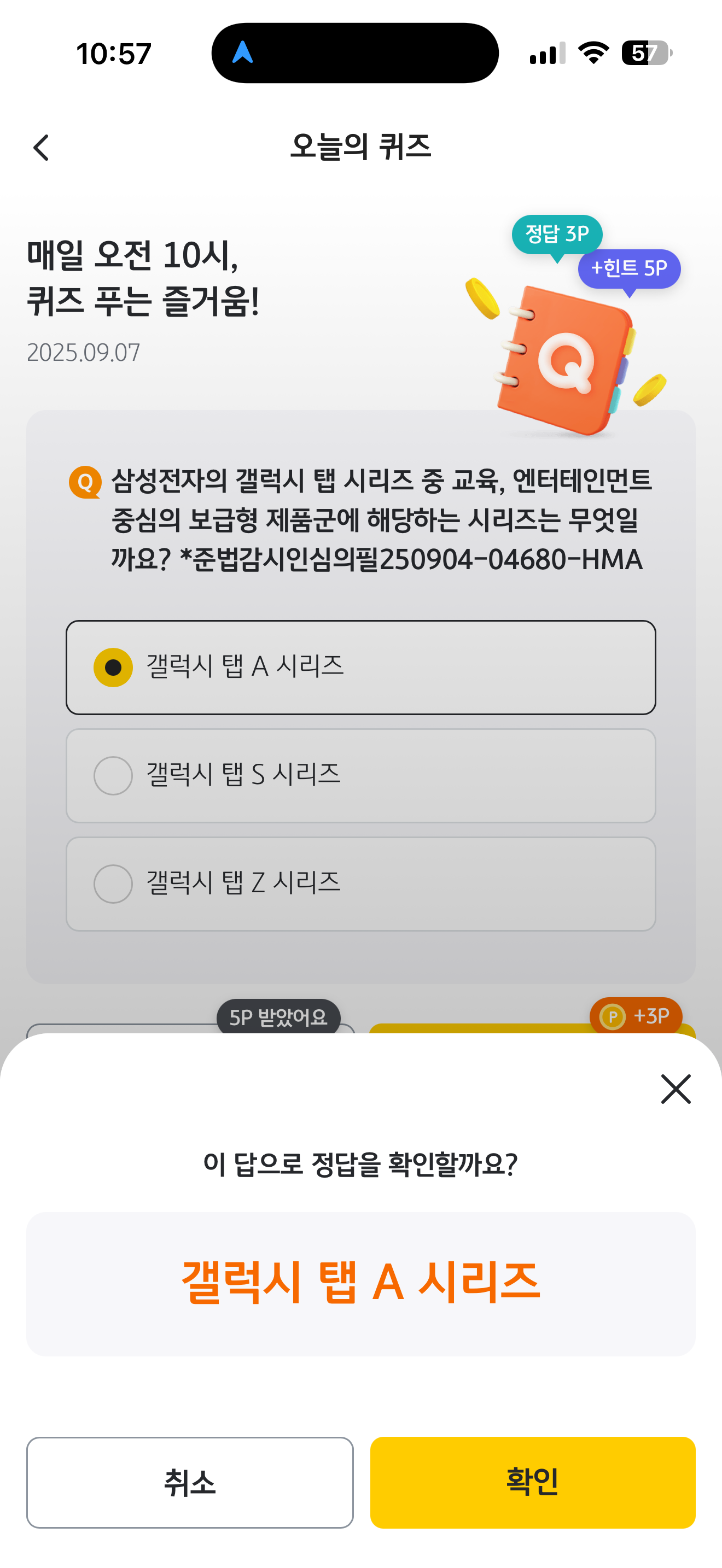 삼성전자의 갤럭시 탭 시리즈 중 교육, 엔터테인먼트 중심의 보급형 제품군에 해당하는 시리즈는 무엇일까요? *준법감시인심의필250904-04680-HMA 보기는 1. 갤럭시 탭 A 시리즈 2. 갤럭시 탭 S 시리즈 3. 갤럭시 탭 Z 시리즈 입니다