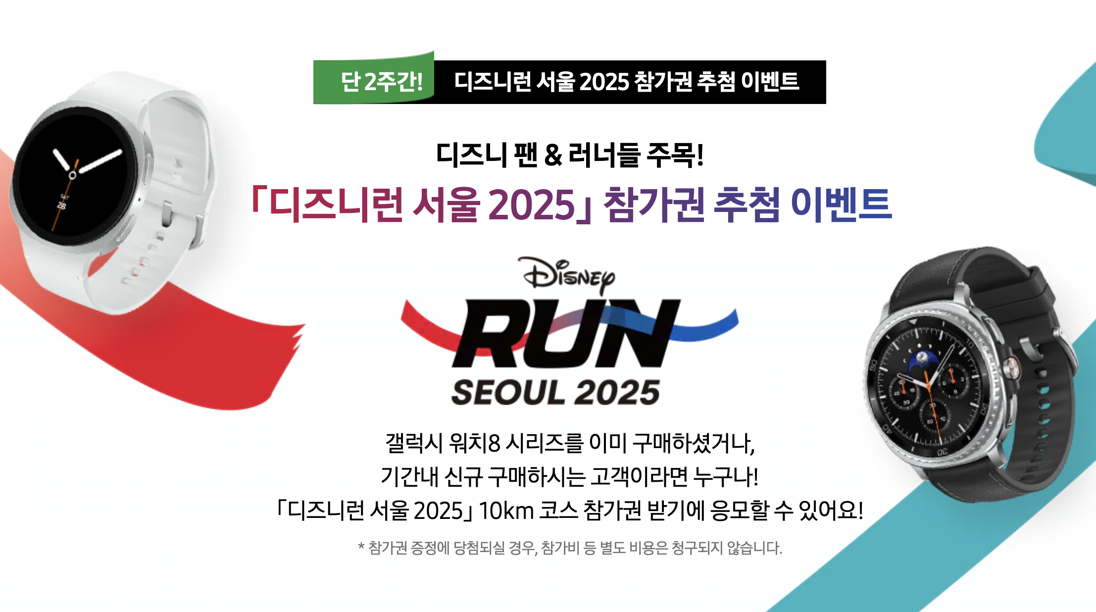 삼성 갤럭시워치8과 갤럭시워치8 클래식을 구매한 분들에게 반가운 소식이 있습니다. 바로 디즈니런 서울 2025에 무료로 참가할 수 있는 기회인데요. 평소 달리기를 좋아하시거나 특별한 러닝 이벤트를 경험해보고 싶으신 분들이라면 놓치지 마세요.