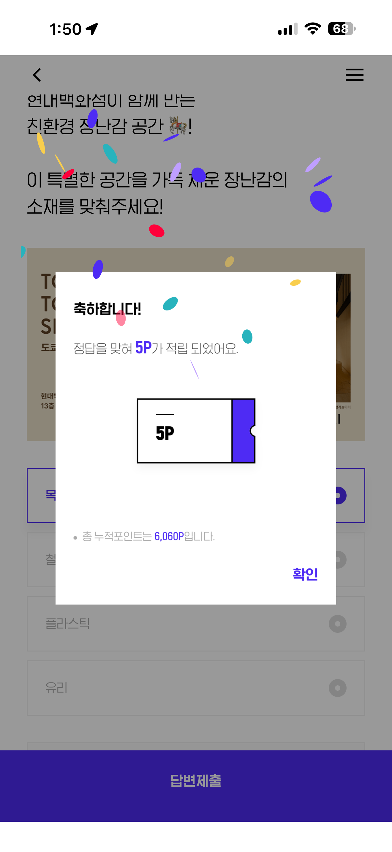 도쿄장난감미술관 서울을 현대백화점 천호점 13층 문화홀에서 만나보세요! 9월 26일 금요일 OPEN 일본 전역 14개의 미술관을 운영중인 도쿄 장난감 미술관과 현대백화점이 함께 만든 친환경 장난감 공간! 이 특별한 공간을 가득 채운 장난감의 소재를 맞춰주세요! 보기는 1. 목재 2. 철재 3. 플라스틱 4. 유리 입니다