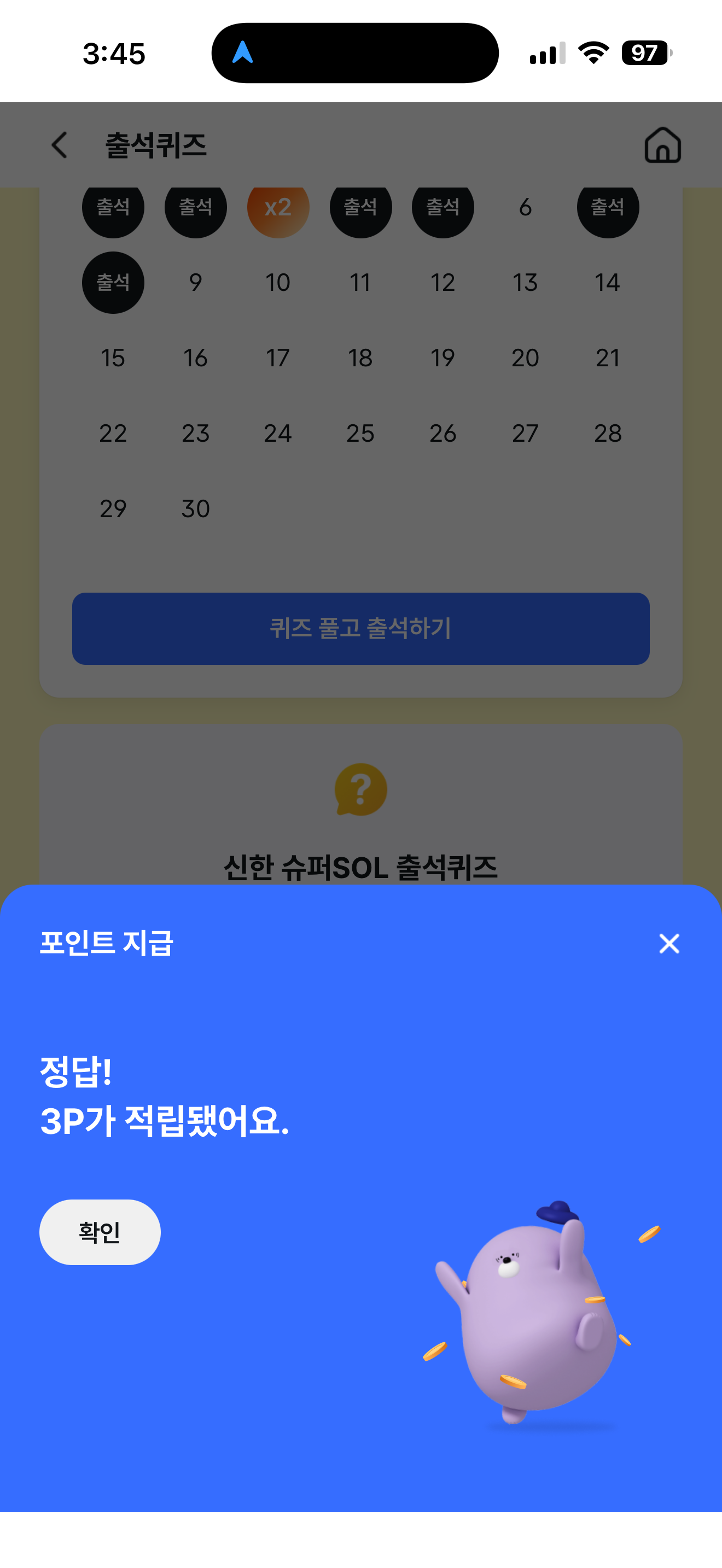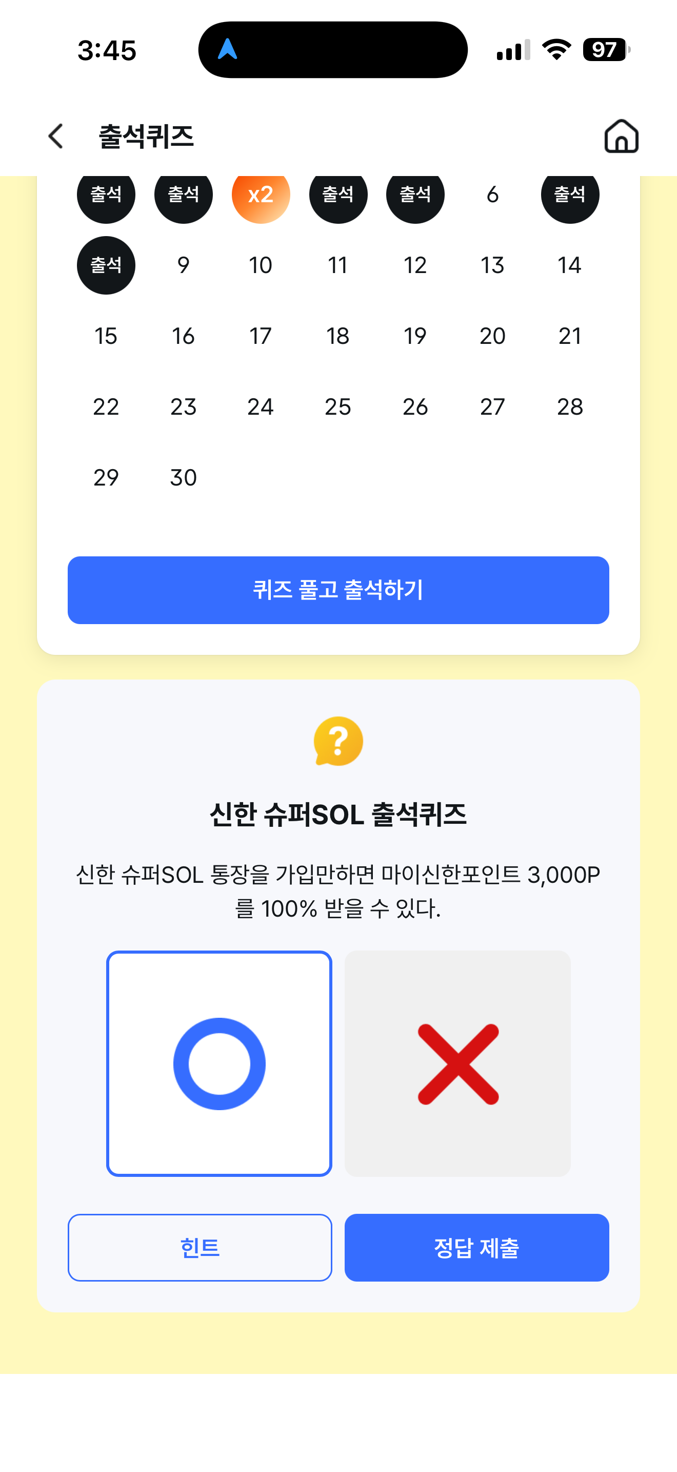신한 슈퍼SOL 출석퀴즈 정답은 O 입니다