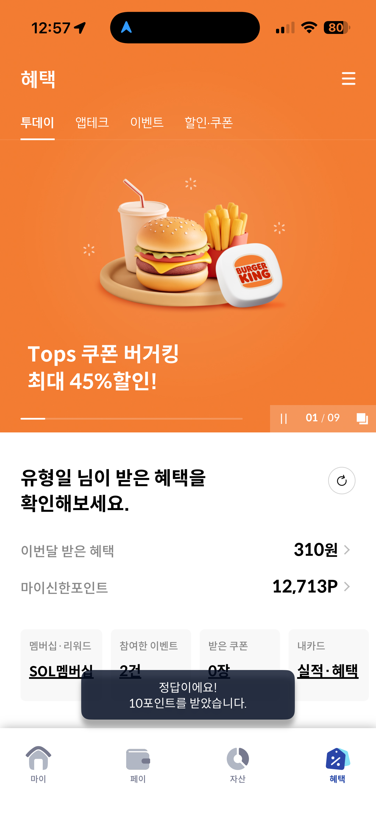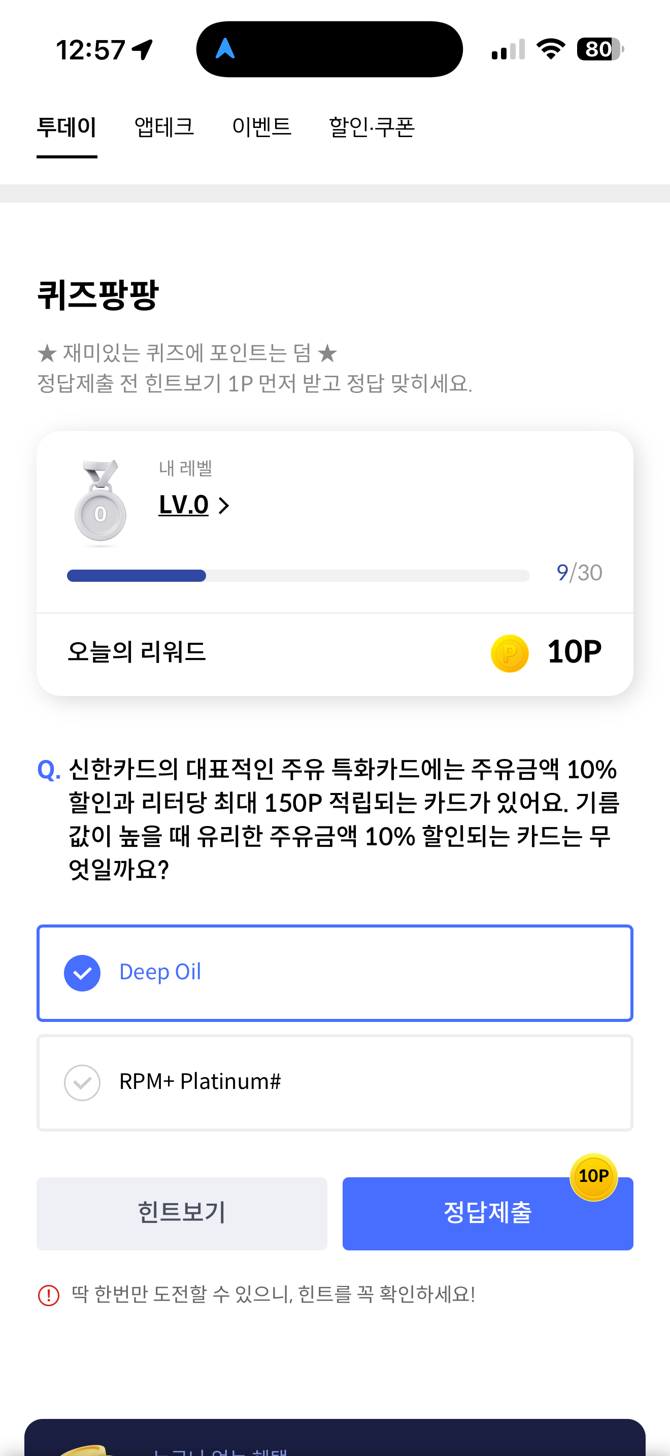 신한카드 퀴즈팡팡 정답은 Deep Oil 입니다