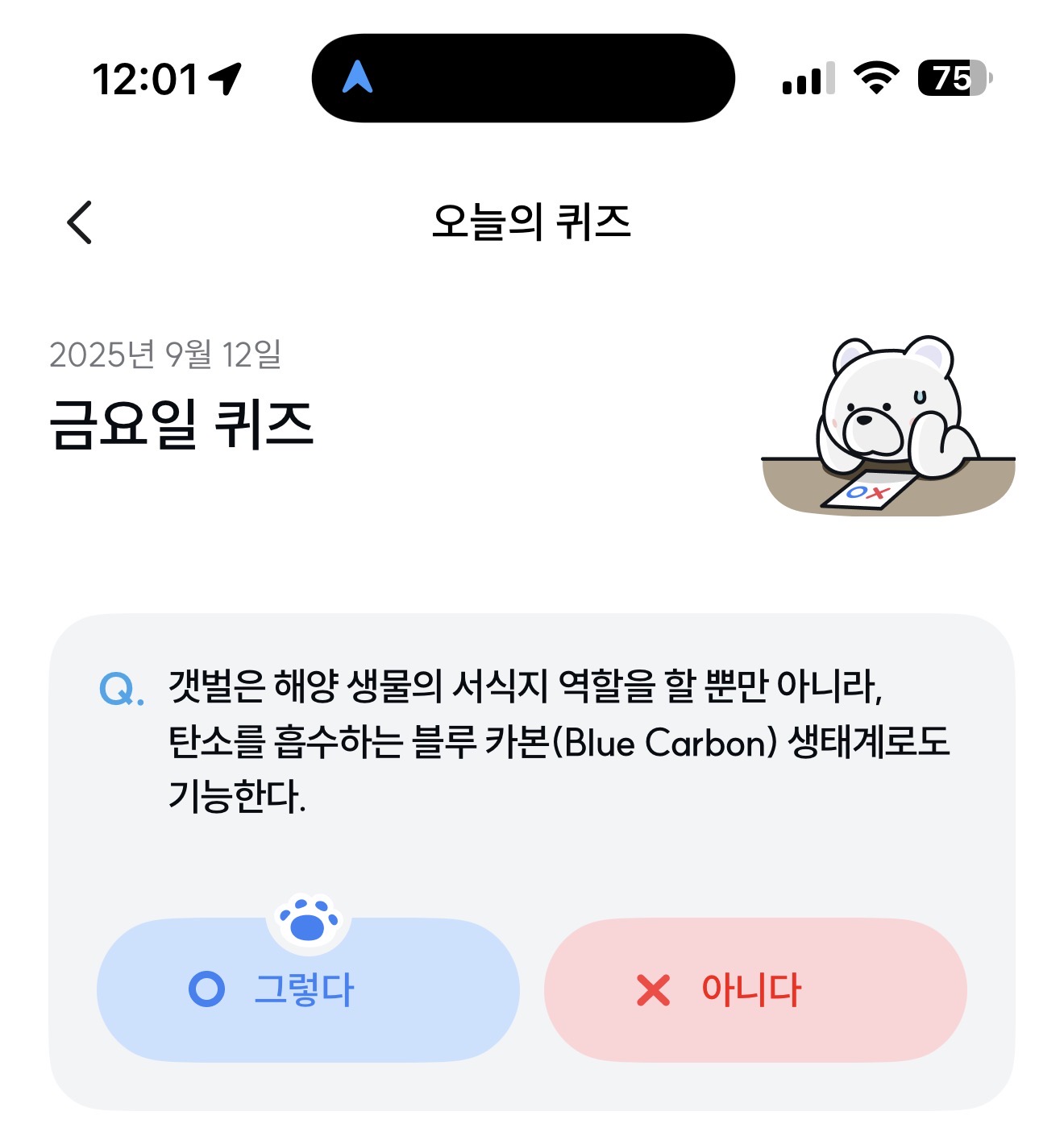 기후행동 기회소득 오늘의 퀴즈 정답은 그렇다 입니다