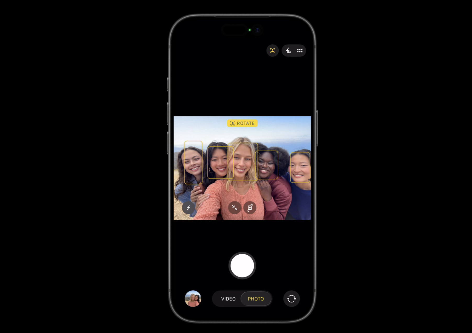 전면 카메라 역시 사각형 센서의 Center Stage(최대 18MP)로 업그레이드되어, 단체 셀피나 브이로그에서 세로로 들고도 가로/세로 자유 전환이 가능하며, 4K HDR 흔들림 보정과 전·후면 동시 촬영을 지원합니다.