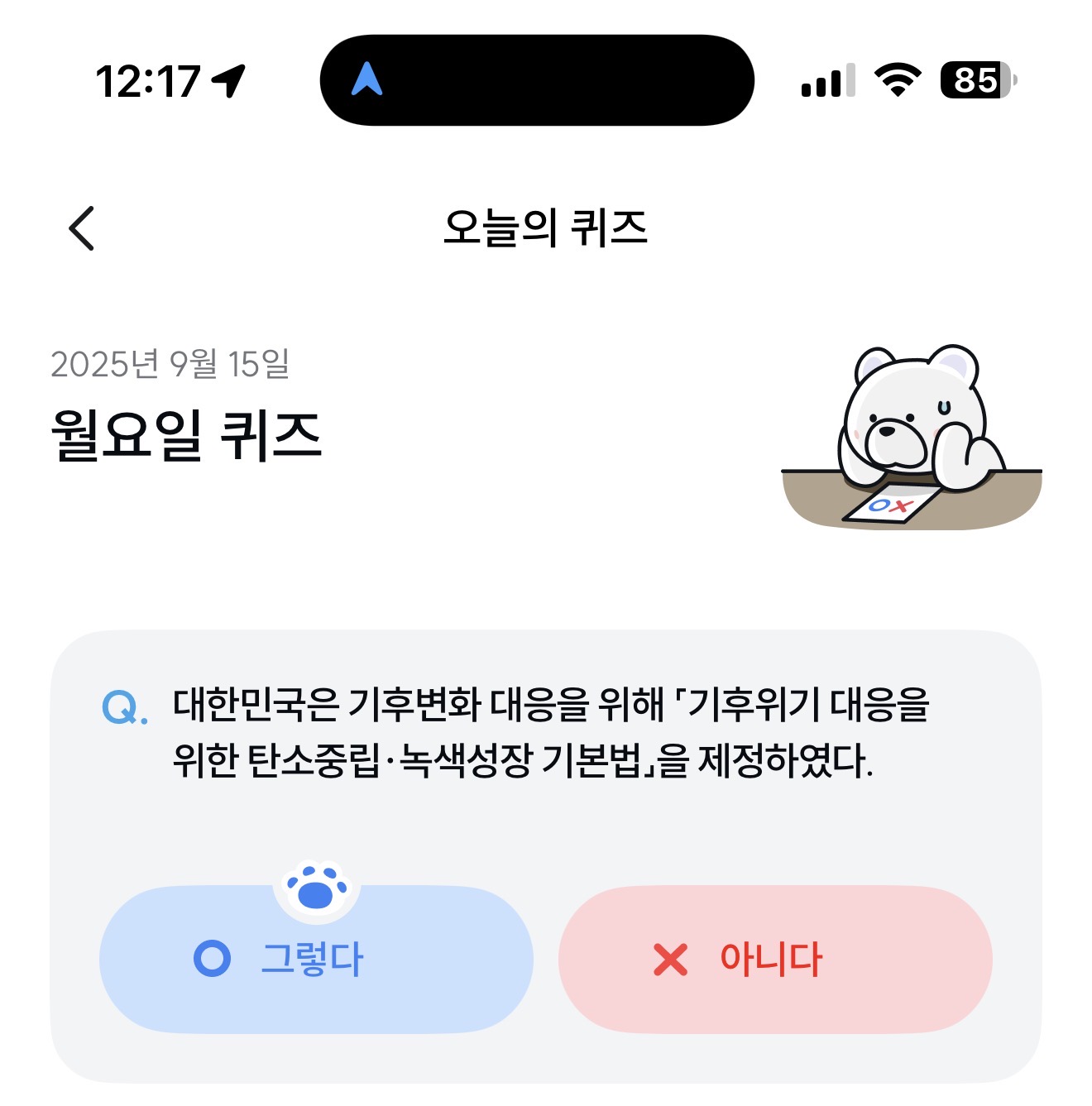 기후행동 기회소득 오늘의 퀴즈 정답은 그렇다 입니다