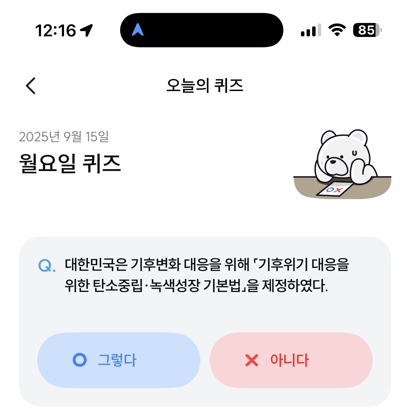 기후행동 기회소득 오늘의 퀴즈 정답은 그렇다 입니다
