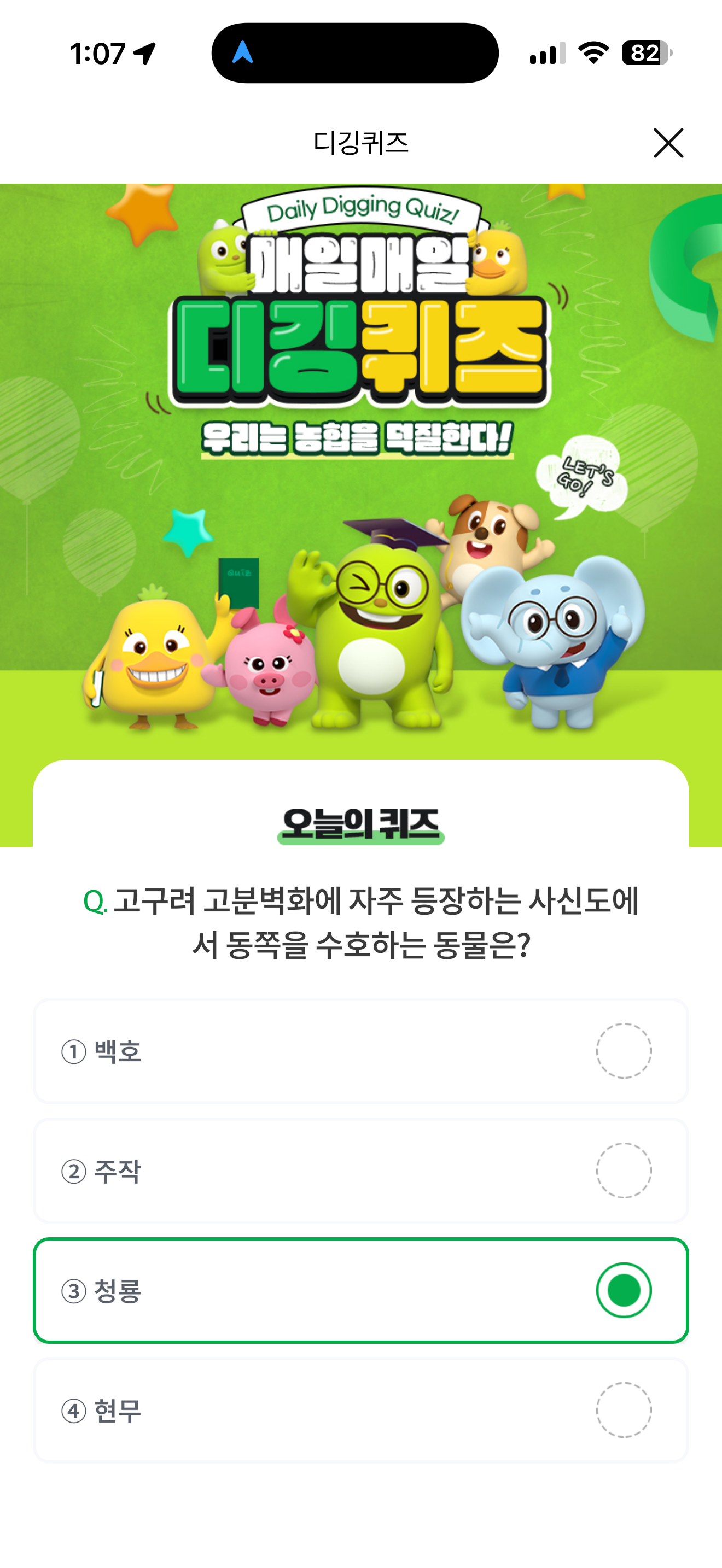 NH올원뱅크 디깅퀴즈 정답은 청룡 입니다