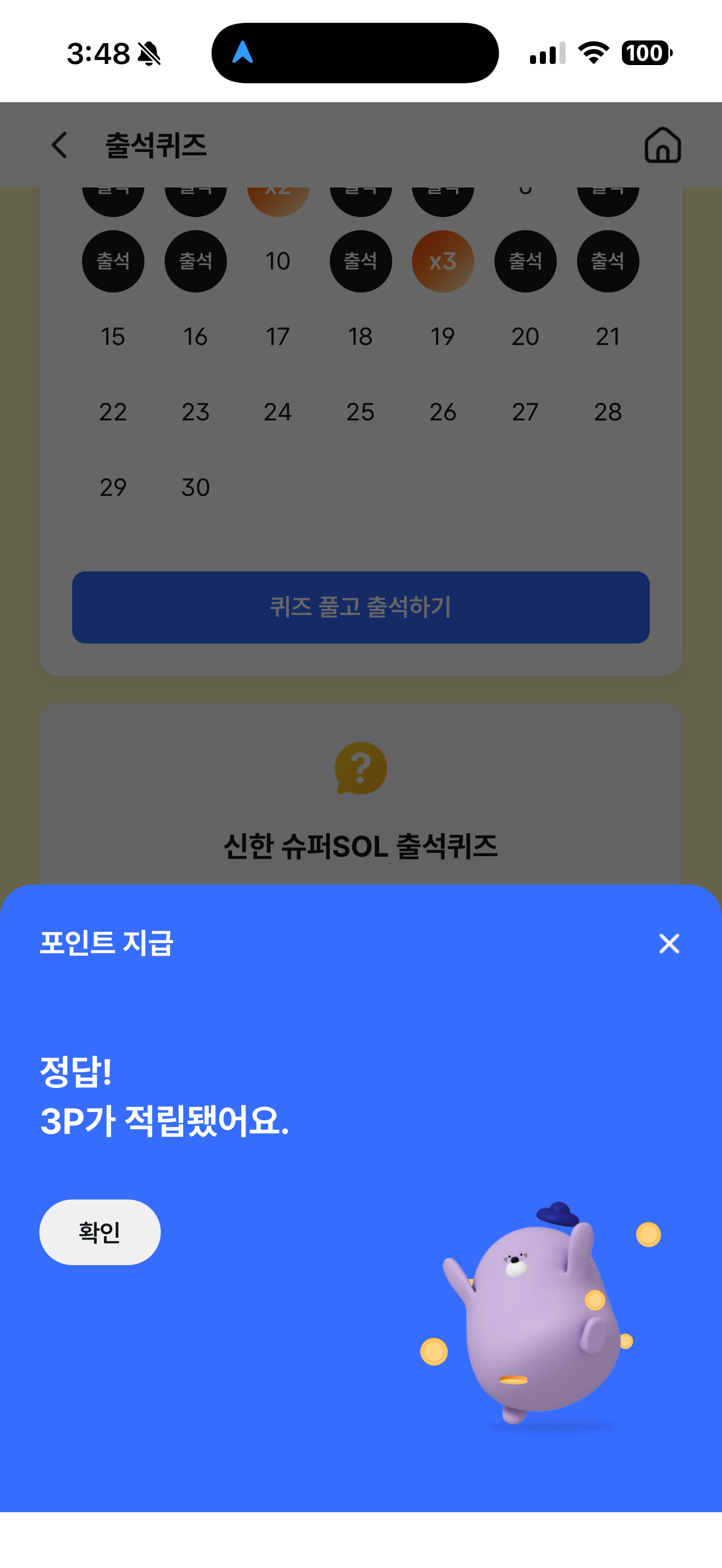 신한 슈퍼SOL 출석퀴즈 9월 16일 문제입니다