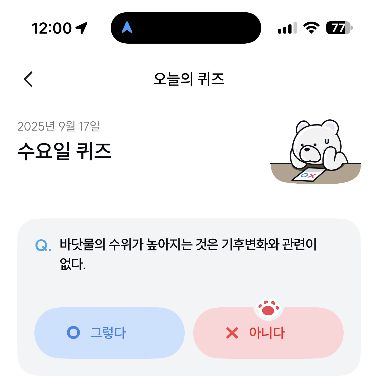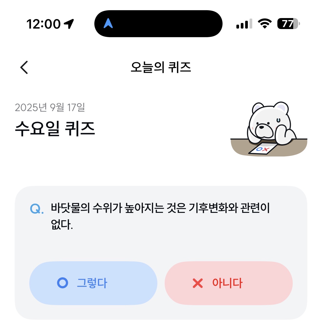 기후행동 기회소득 오늘의 퀴즈 정답은 아니다 입니다