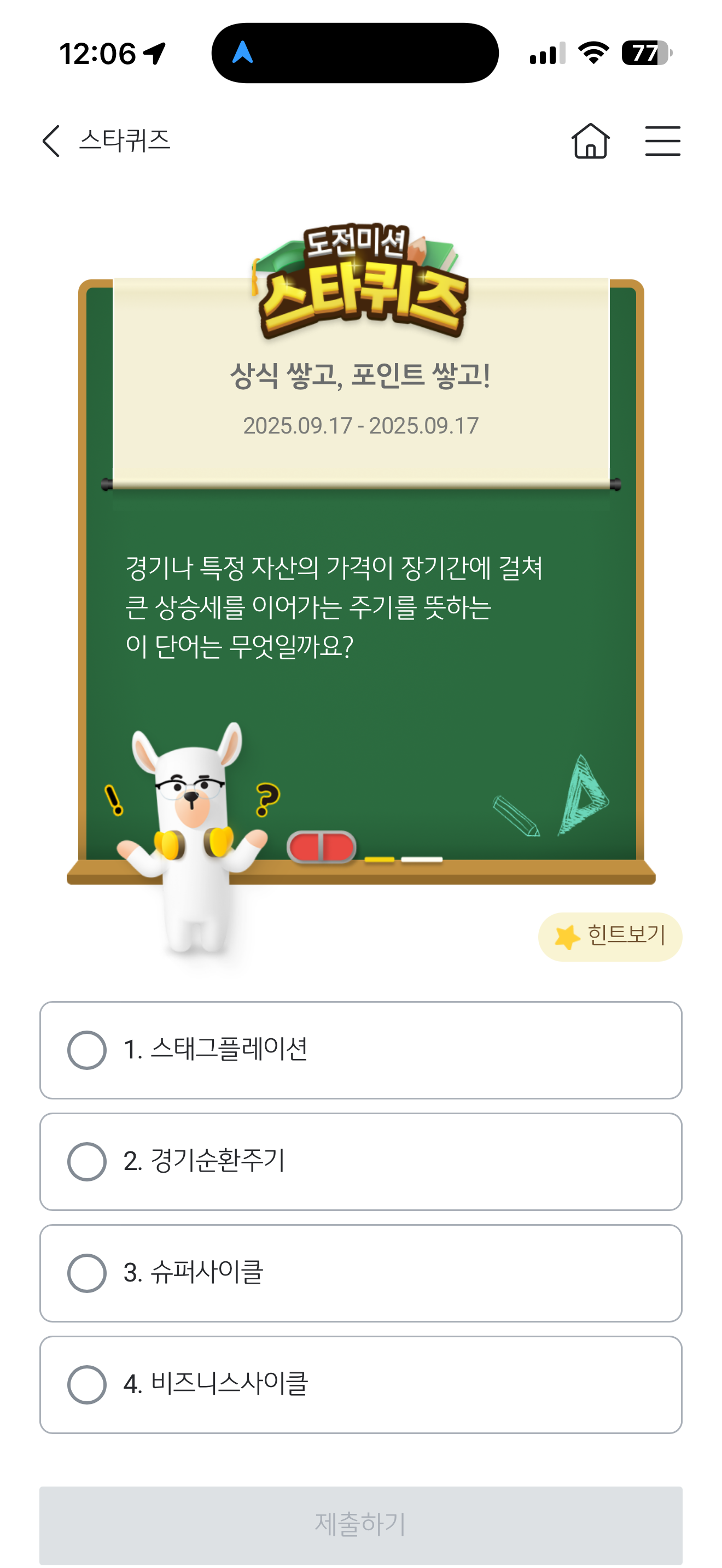 KB스타뱅킹 스타퀴즈 정답은 슈퍼사이클 입니다