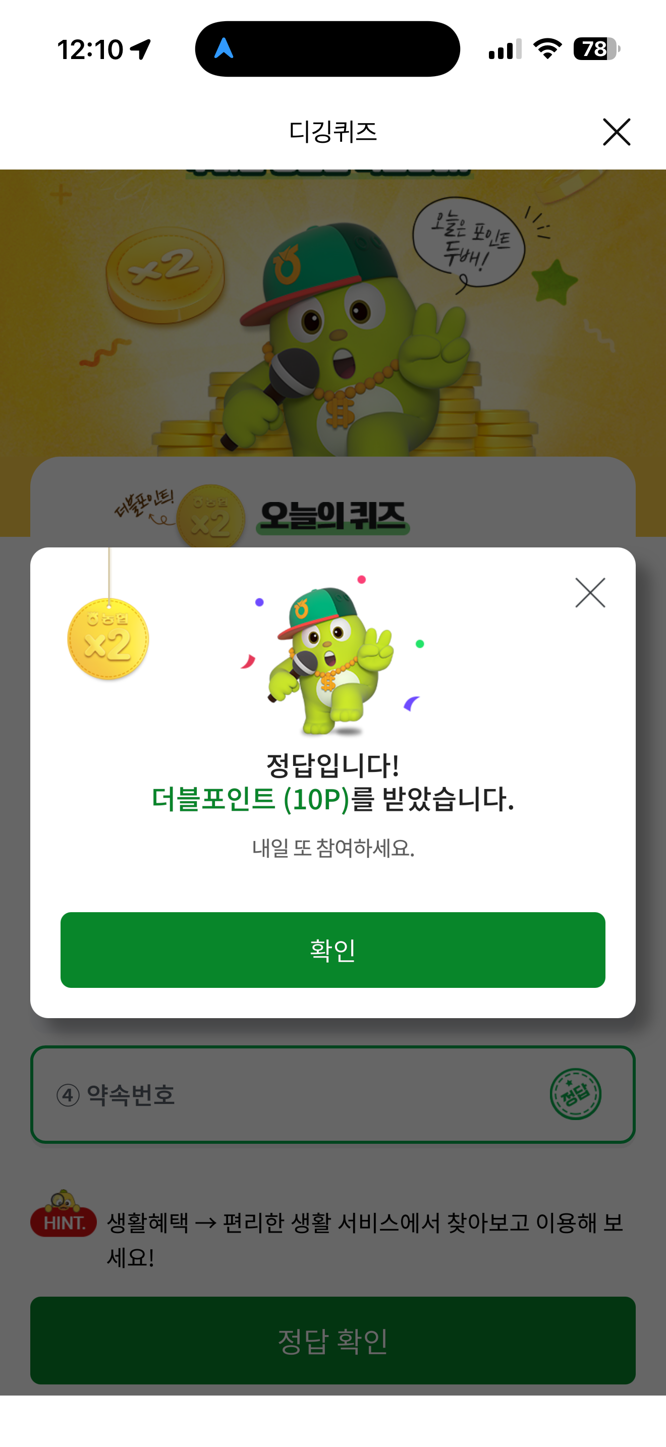NH올원뱅크 디깅퀴즈 정답은 약속번호 입니다