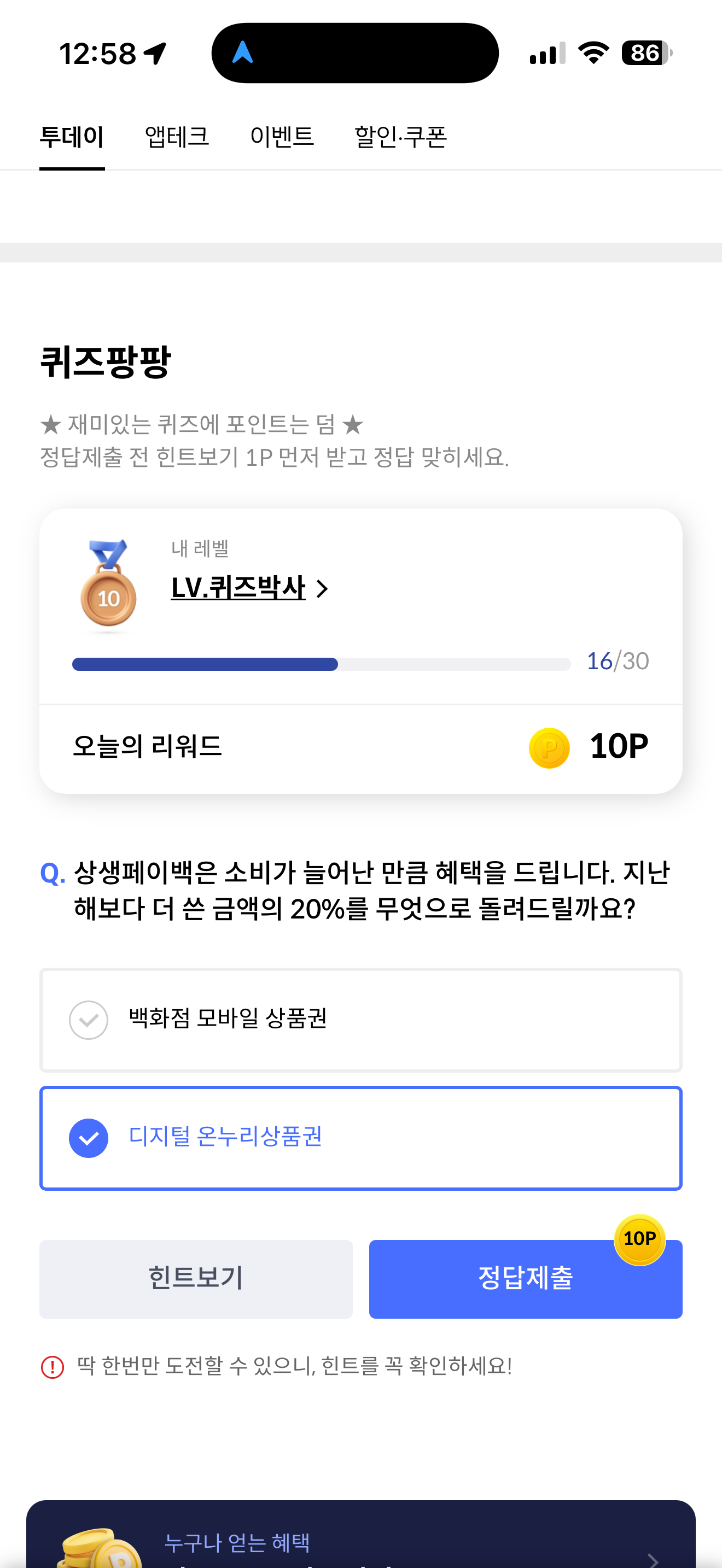 신한카드 퀴즈팡팡 정답은 디지털 온누리상품권 입니다