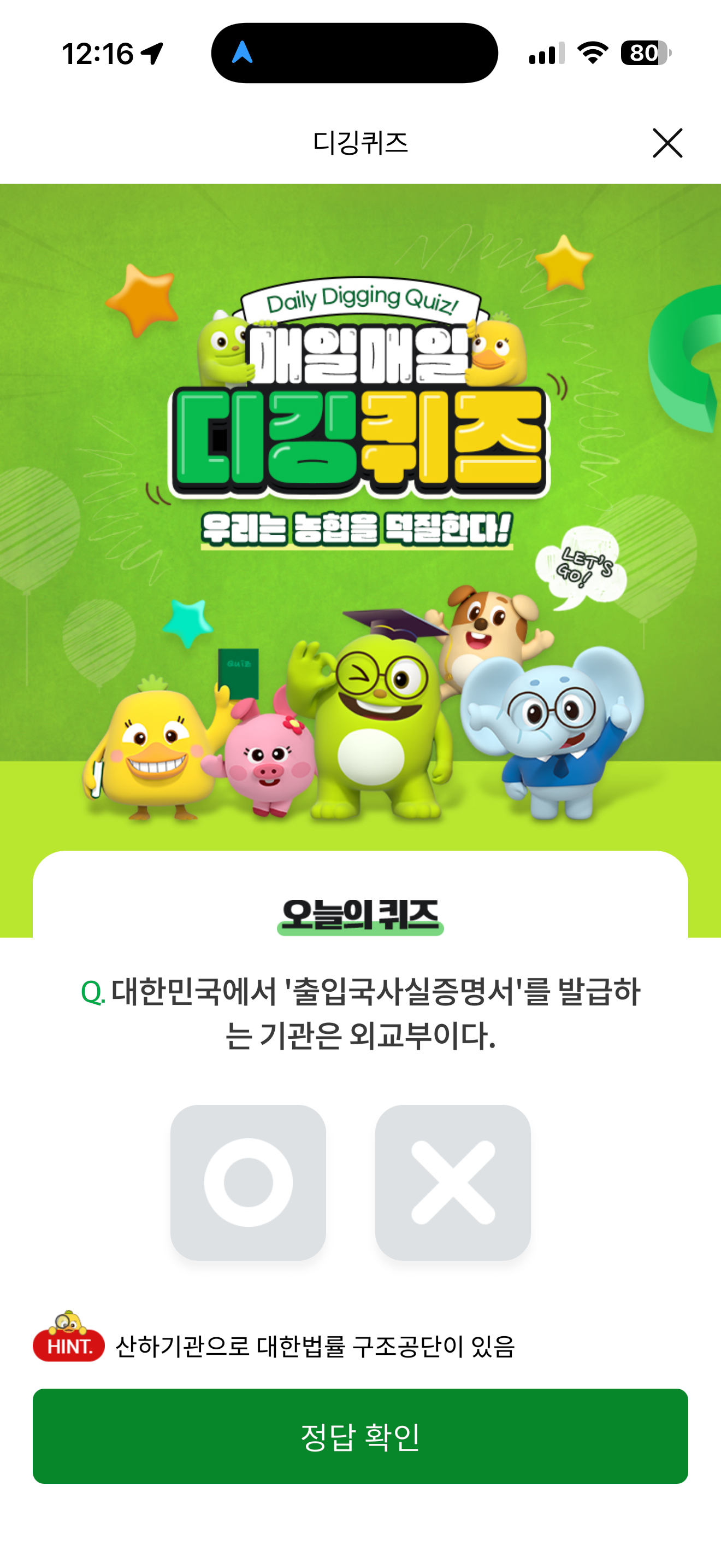 NH올원뱅크 디깅퀴즈 9월 18일 정답(대한민국에서 '출입국사실증명서'를 발급하는 기관은 외교부이다)