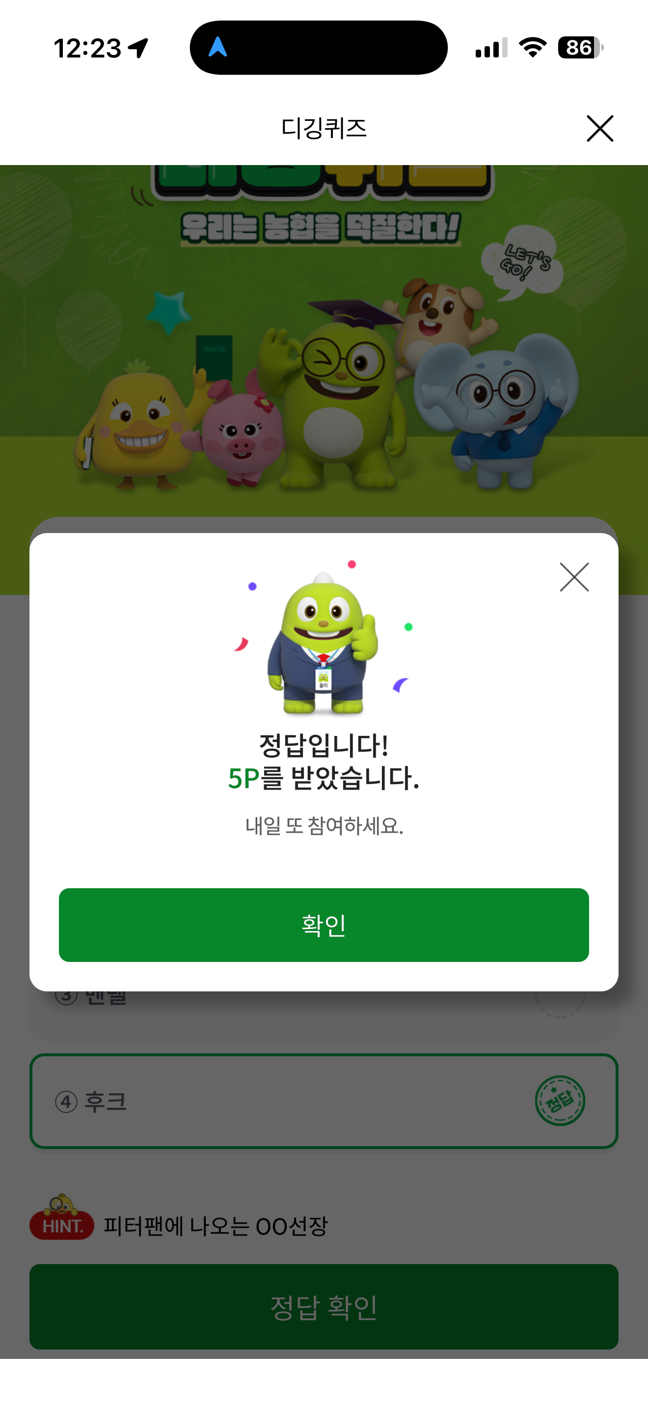 NH올원뱅크 디깅퀴즈 정답은 후크 입니다