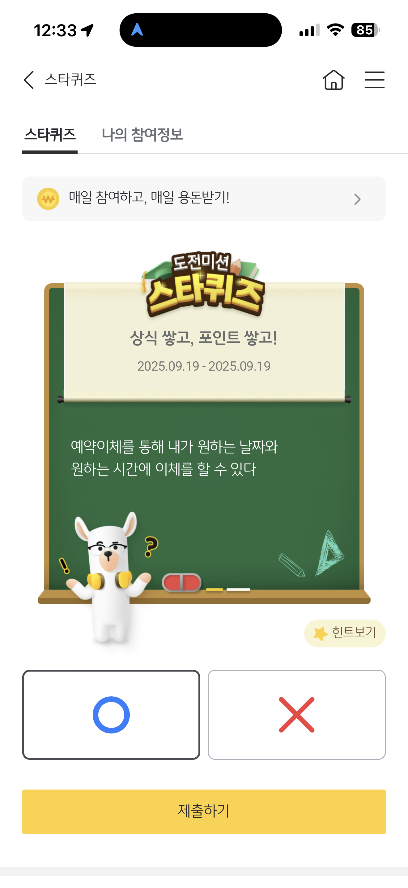 KB스타뱅킹 스타퀴즈 정답은 O 입니다