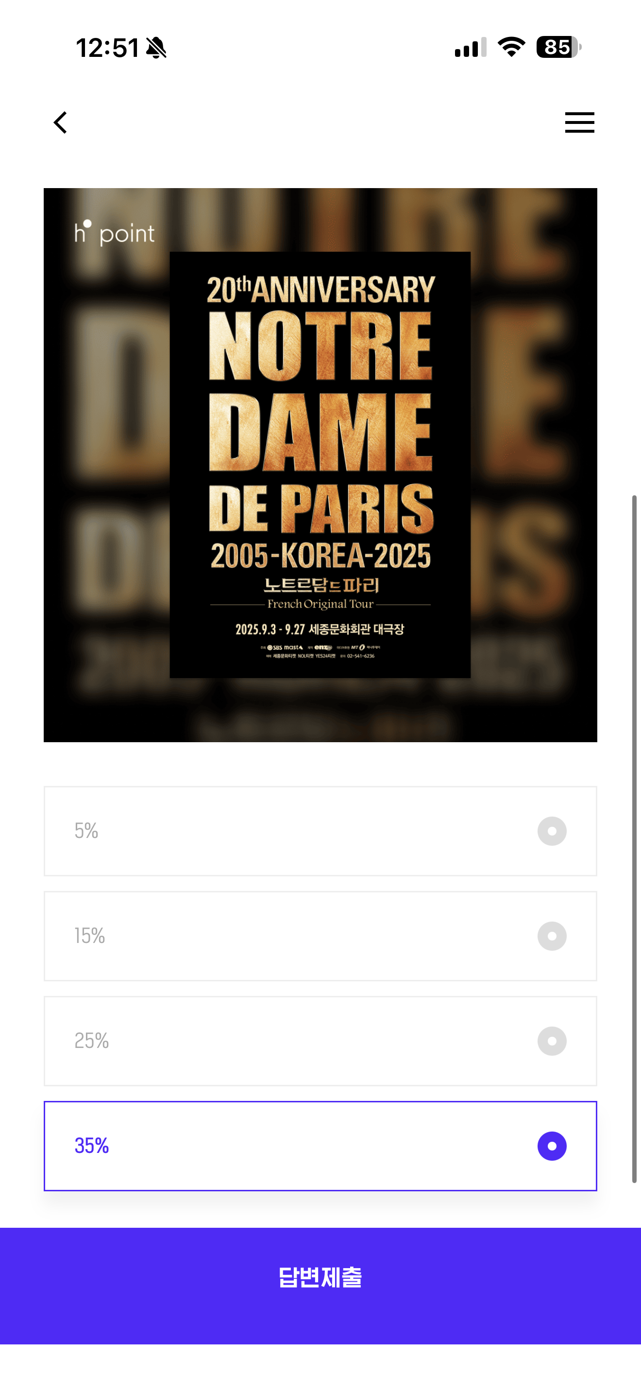 H포인트 퀴즈 정답은 35% 입니다
