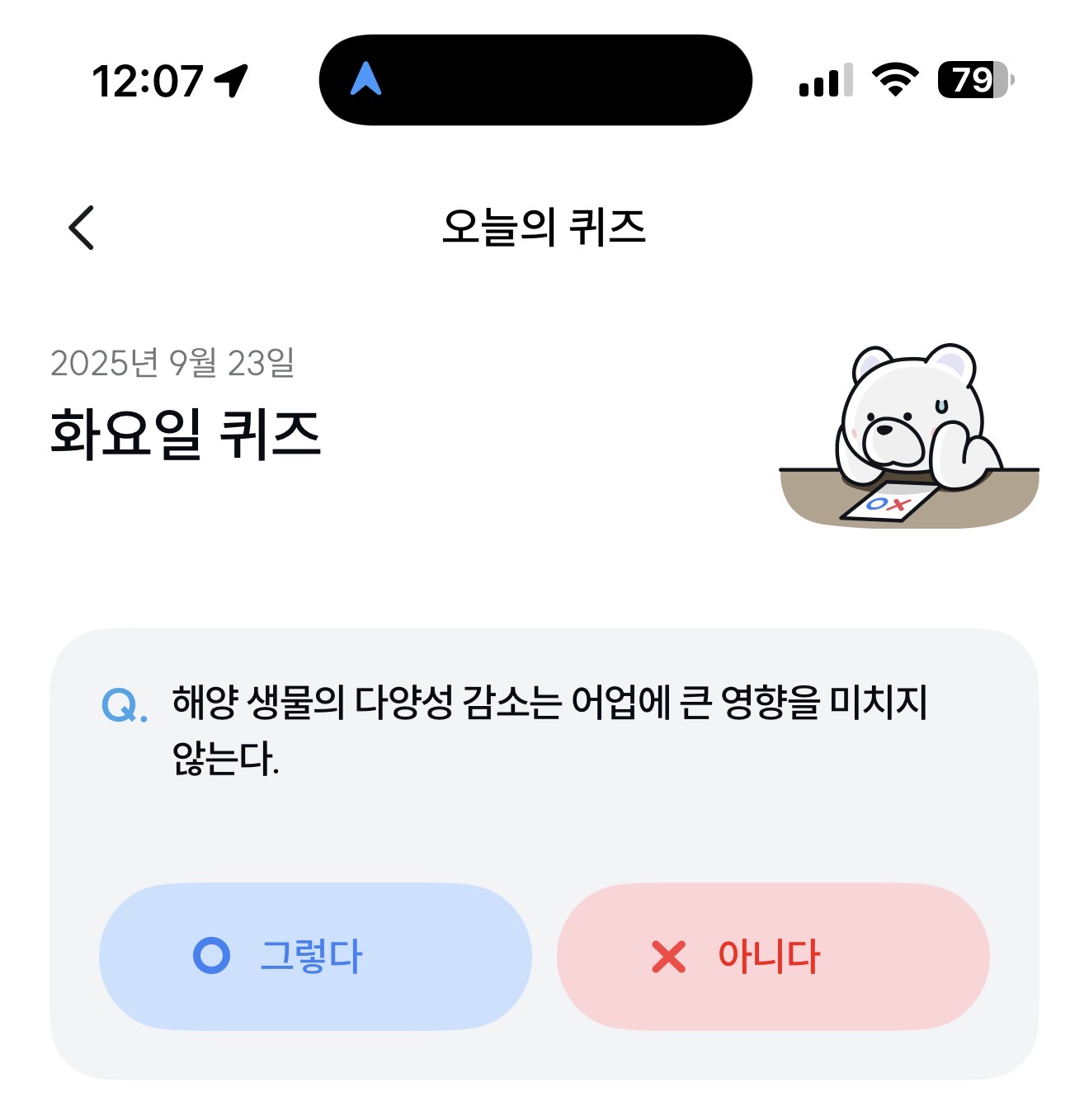 기후행동 기회소득 오늘의 퀴즈 정답은 아니다 입니다