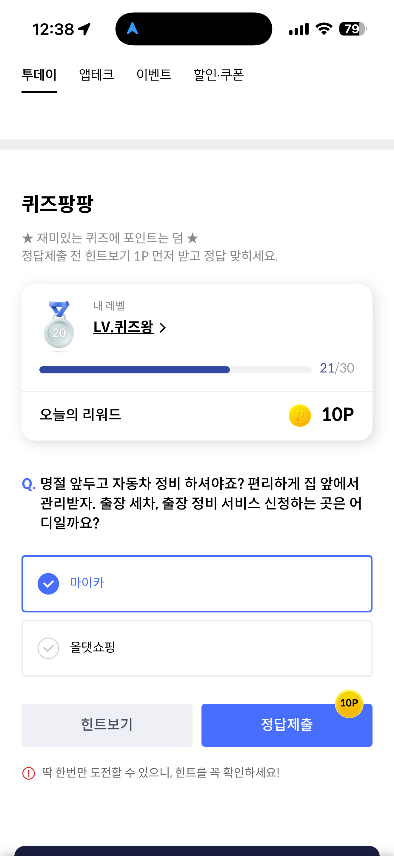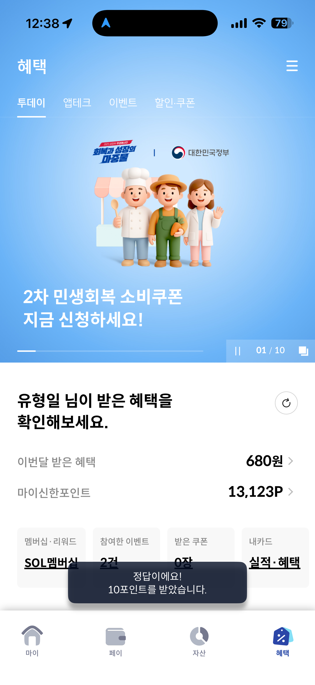 신한카드 퀴즈팡팡 정답은 마이카 입니다