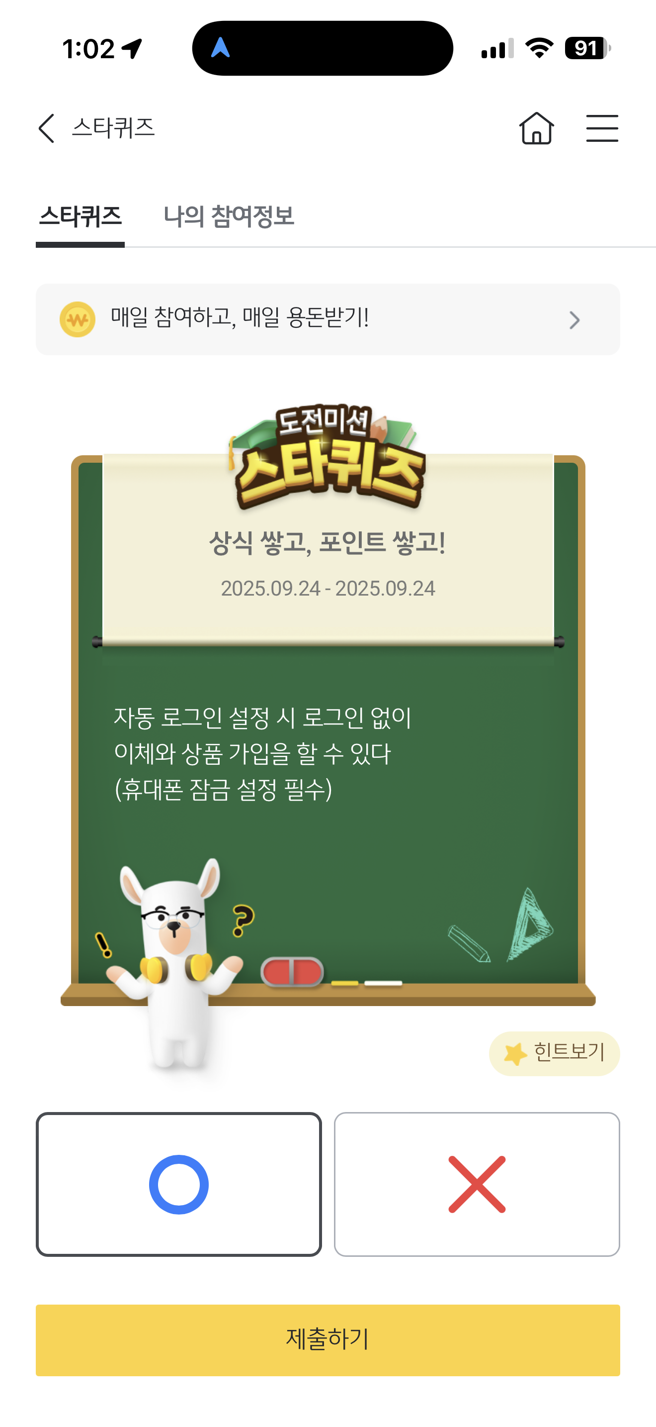 KB스타뱅킹 스타퀴즈 정답은 O 입니다