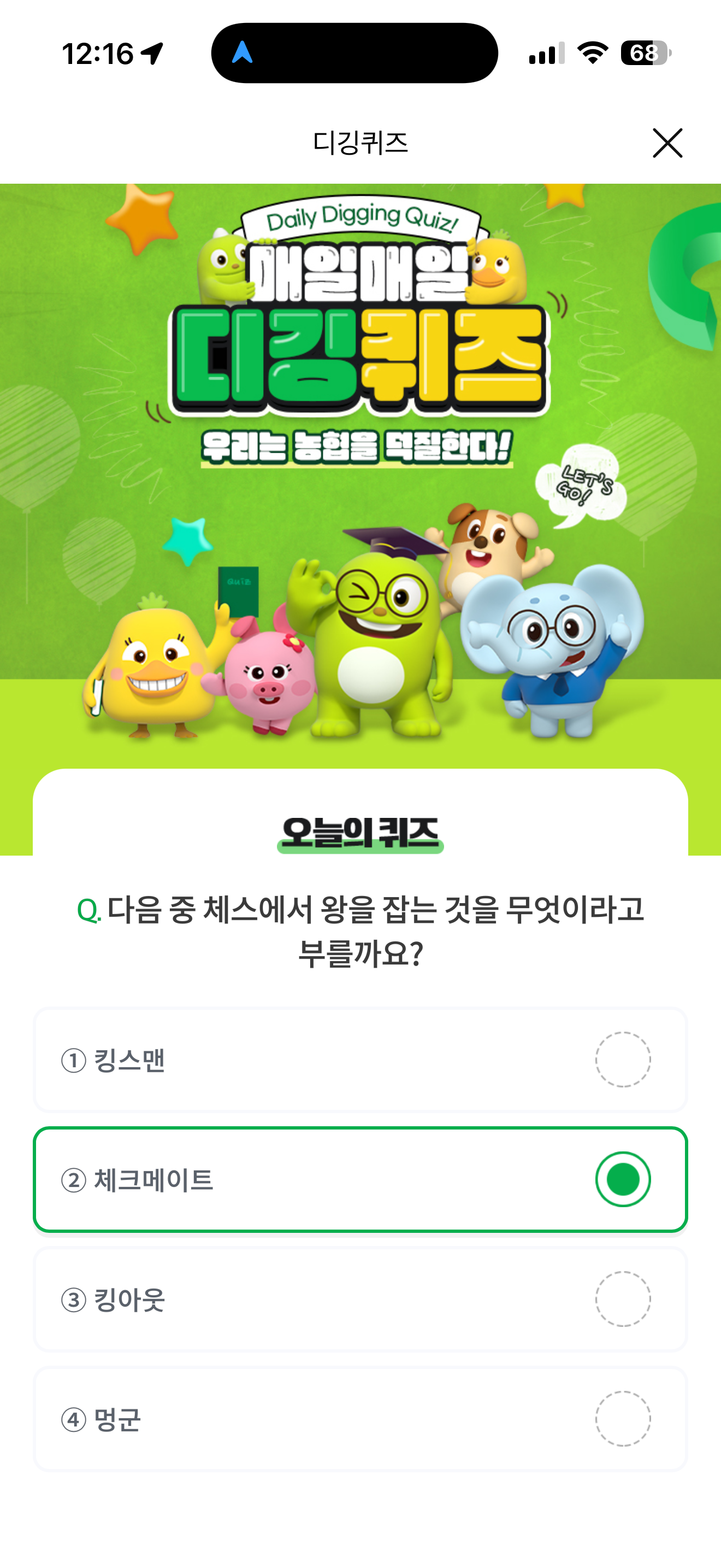 NH올원뱅크 디깅퀴즈 정답은 체크메이트 입니다