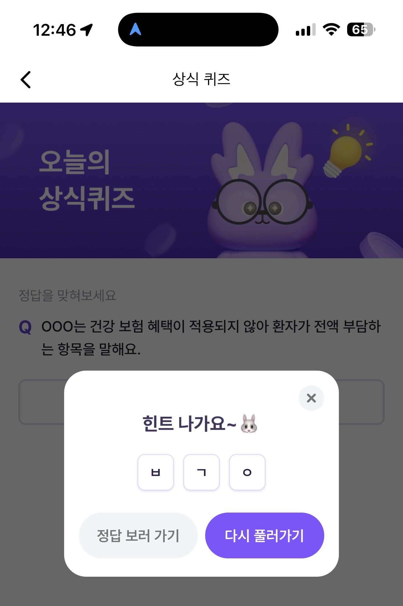 비트버니 오늘의 퀴즈 정답은 비급여 입니다