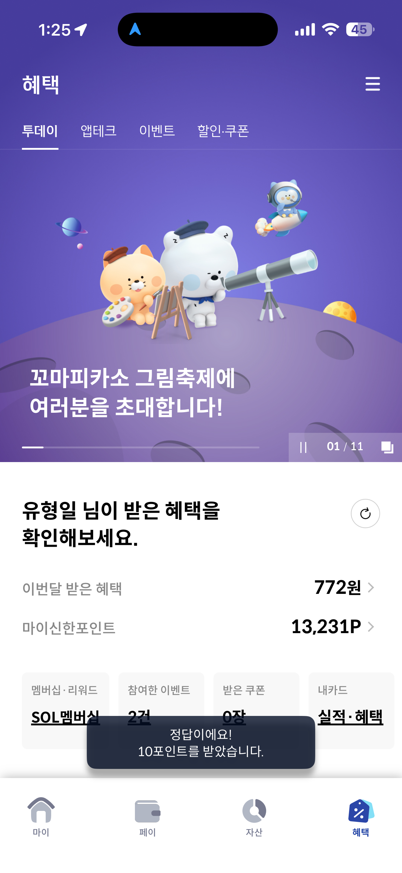 신한카드 퀴즈팡팡 9월 28일 문제입니다