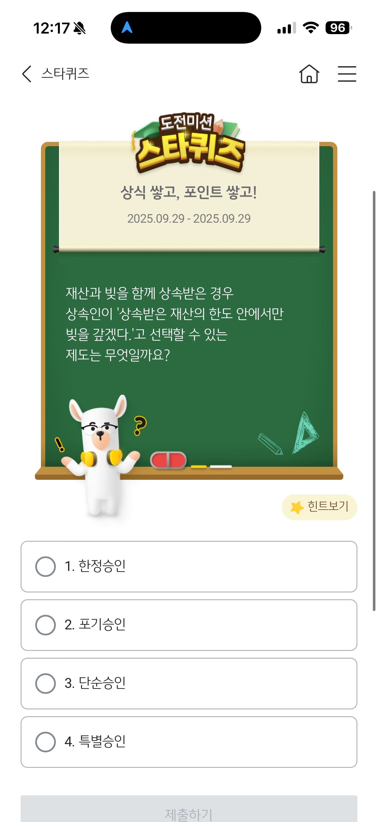 KB스타뱅킹 스타퀴즈 정답은 1. 한정승인 입니다