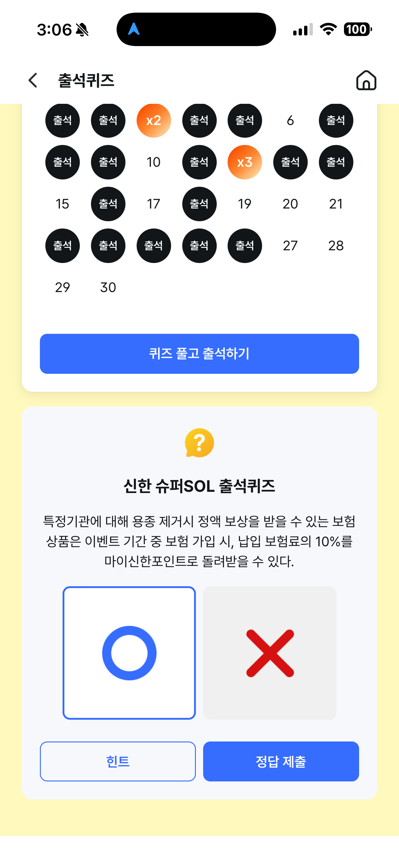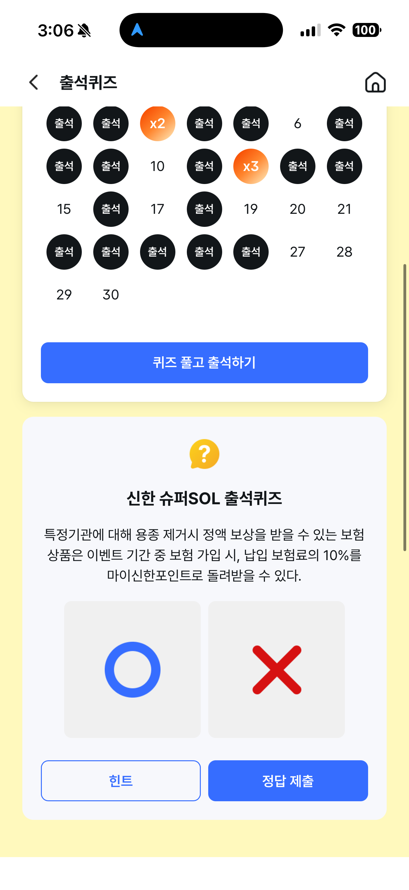 신한 슈퍼SOL 출석퀴즈 정답은 O 입니다