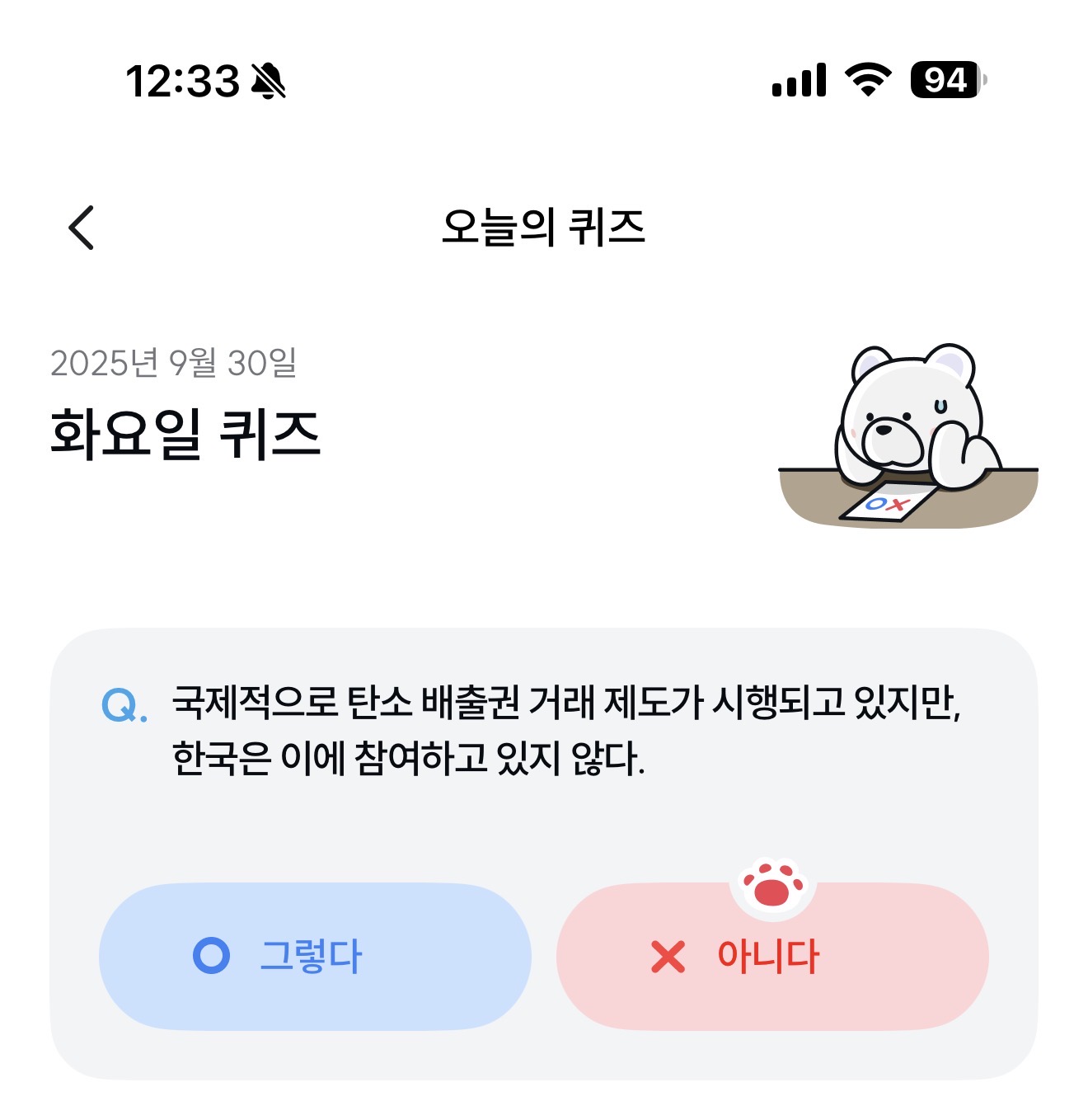 기후행동 기회소득 오늘의 퀴즈 정답은 아니다 입니다