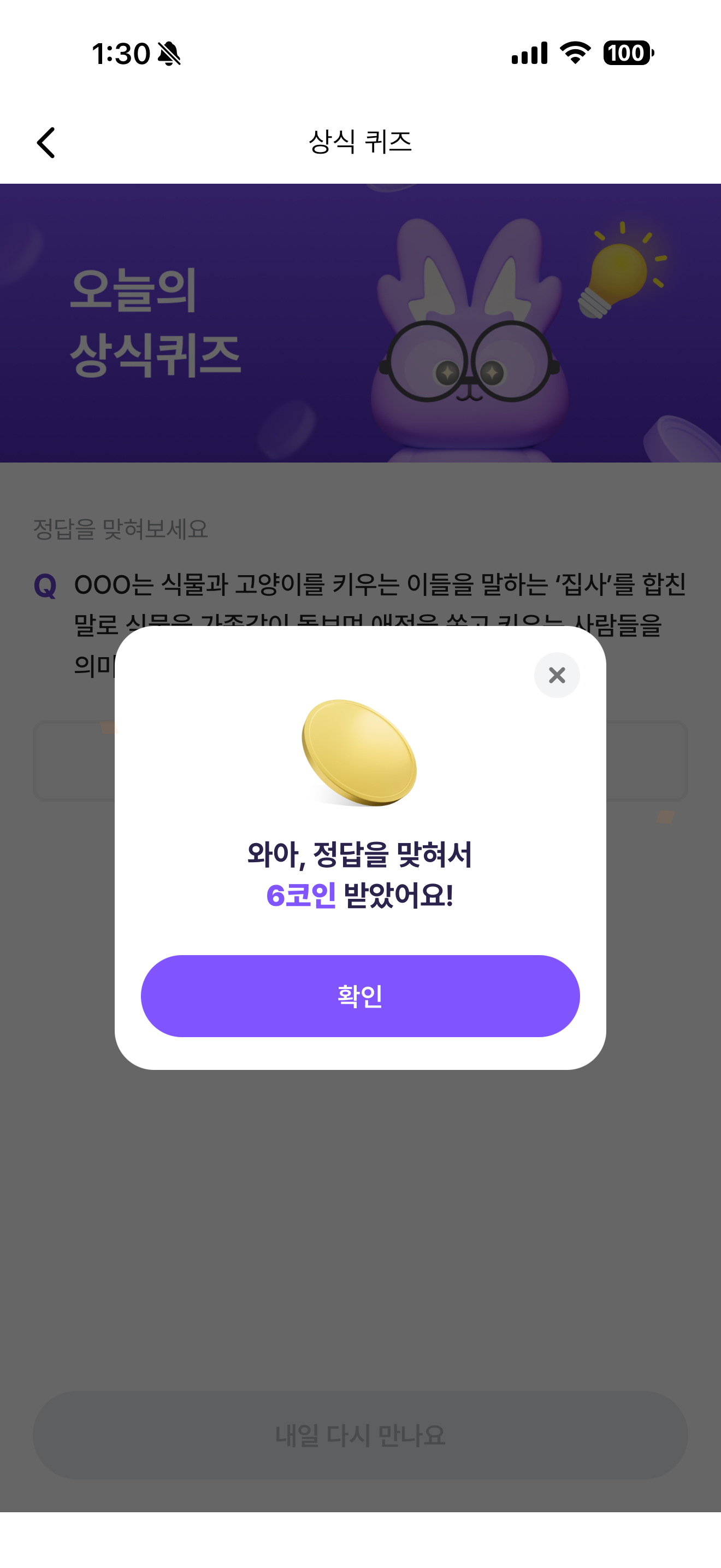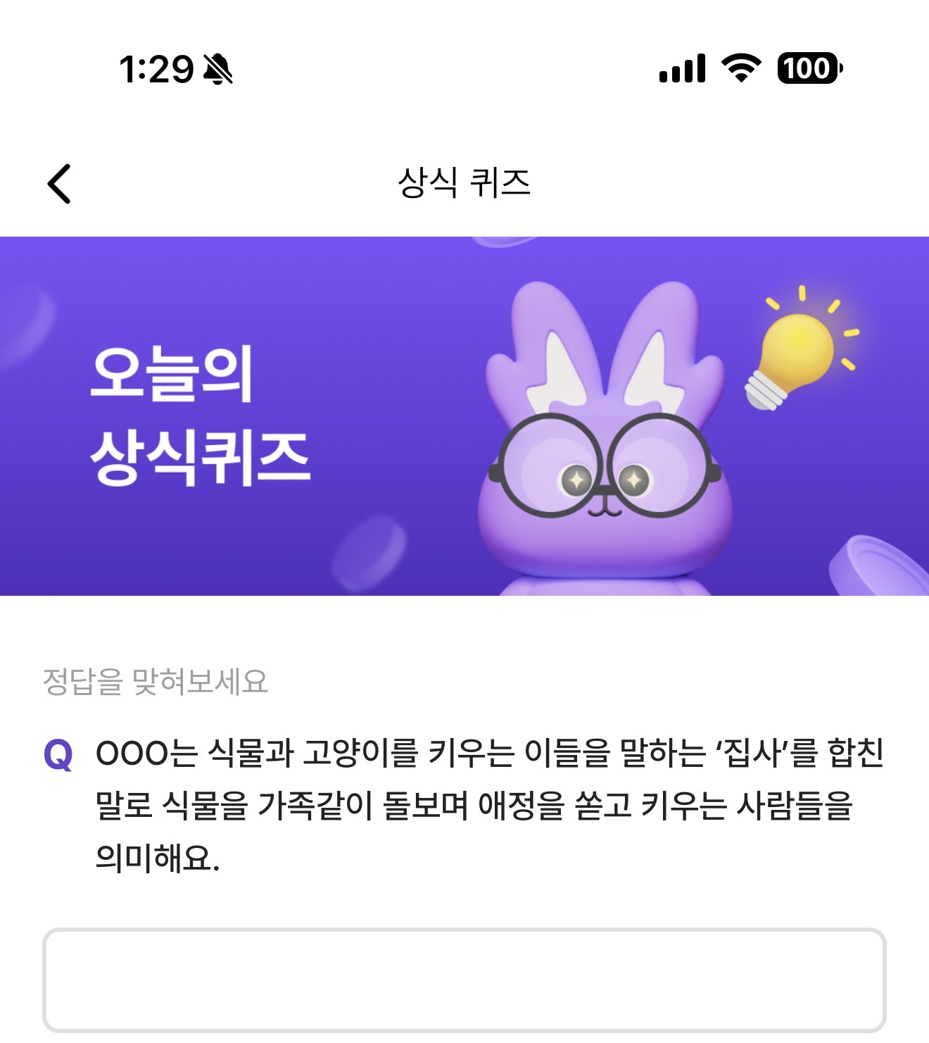 비트버니 오늘의 퀴즈 정답은 식집사 입니다