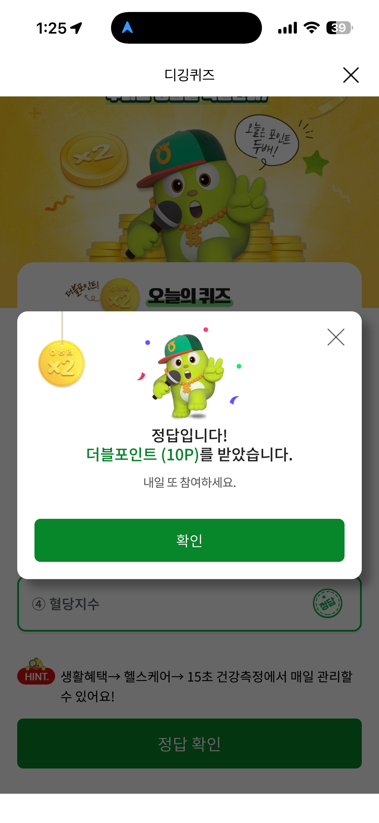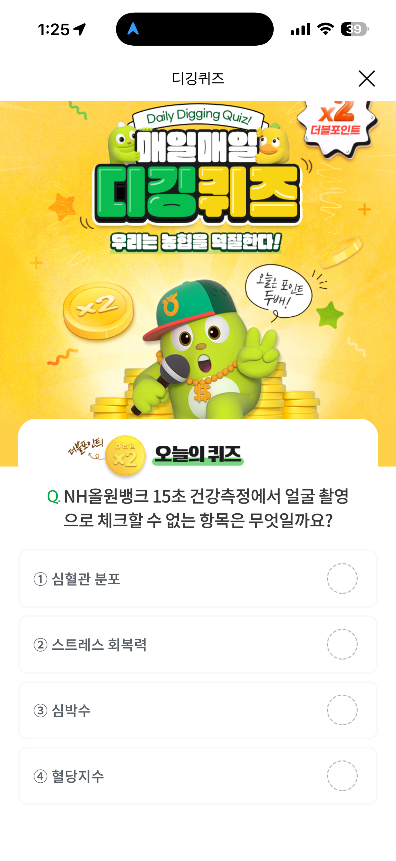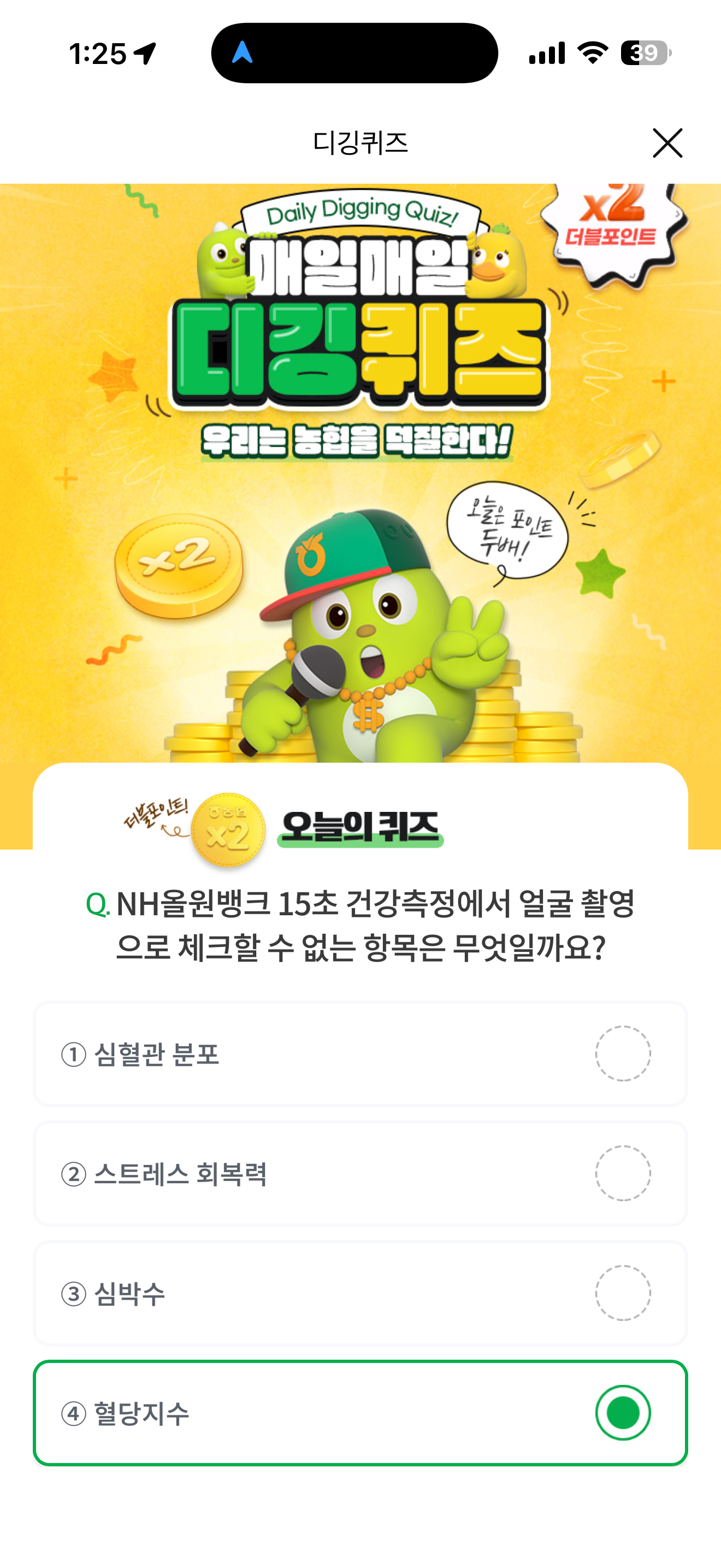 NH올원뱅크 디깅퀴즈 정답은 혈당지수 입니다