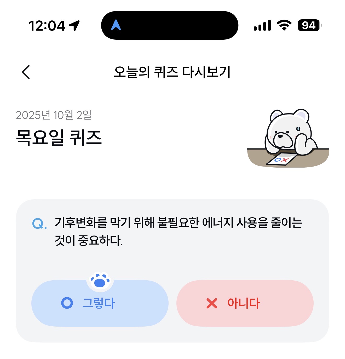 기후행동 기회소득 오늘의 퀴즈 정답은 그렇다 입니다