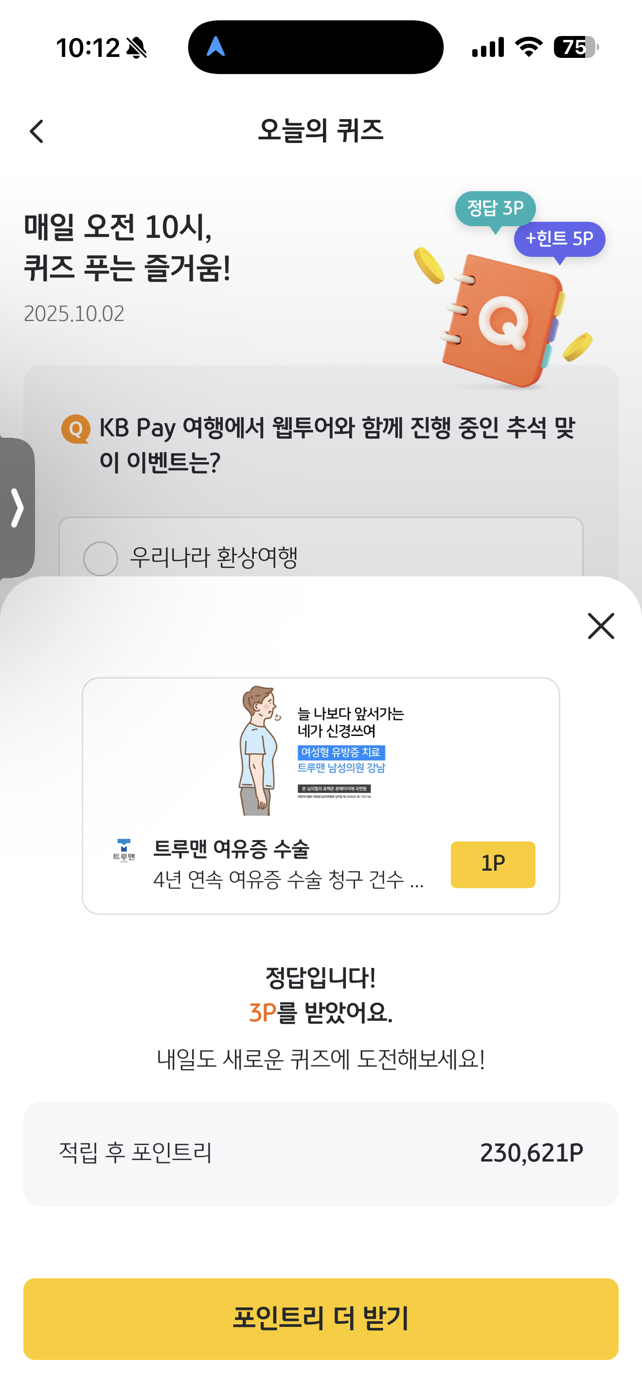 KB Pay 오늘의 퀴즈 10월 2일 정답(KB Pay 여행에서 웹투어와 함께 진행 중인 추석 맞이 이벤트는?)