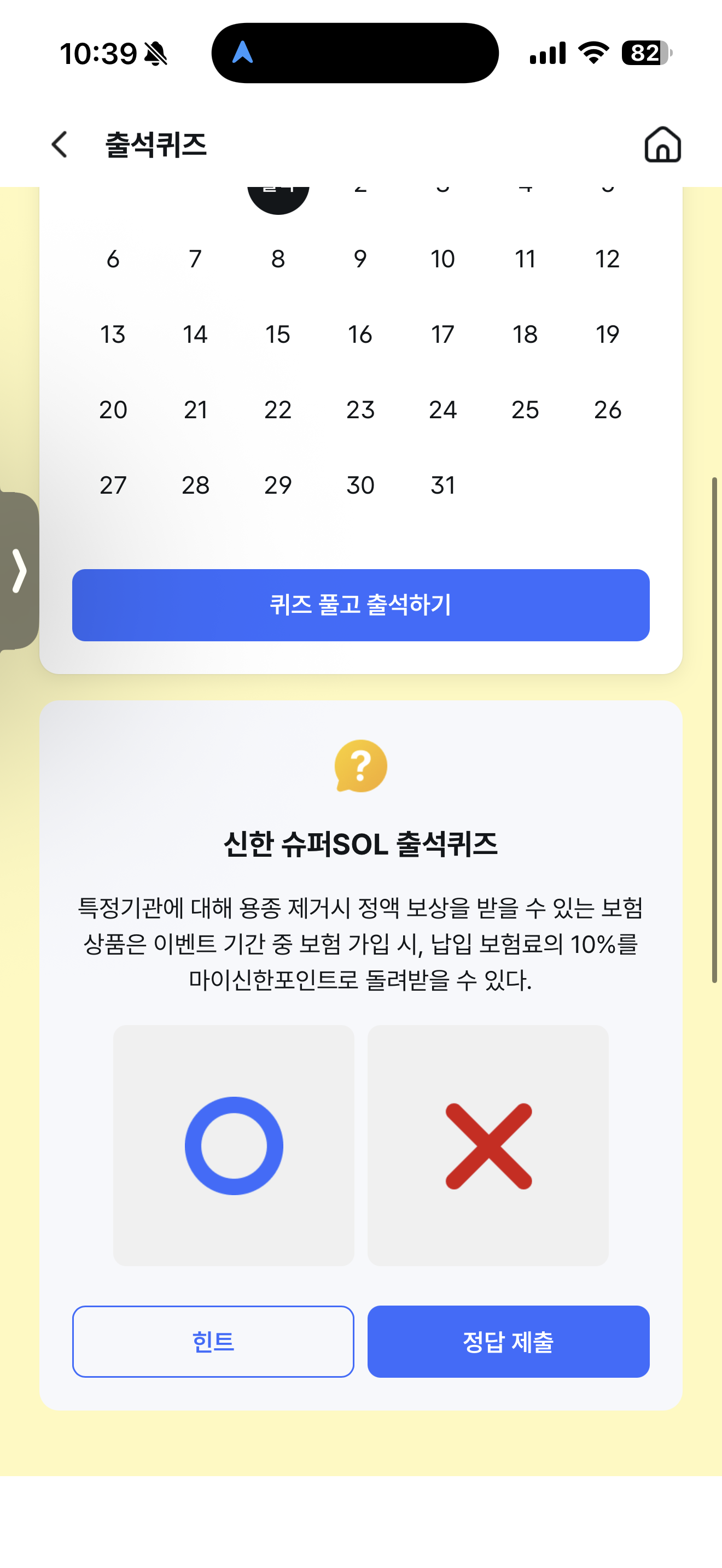 신한 슈퍼SOL 출석퀴즈 정답은 O 입니다