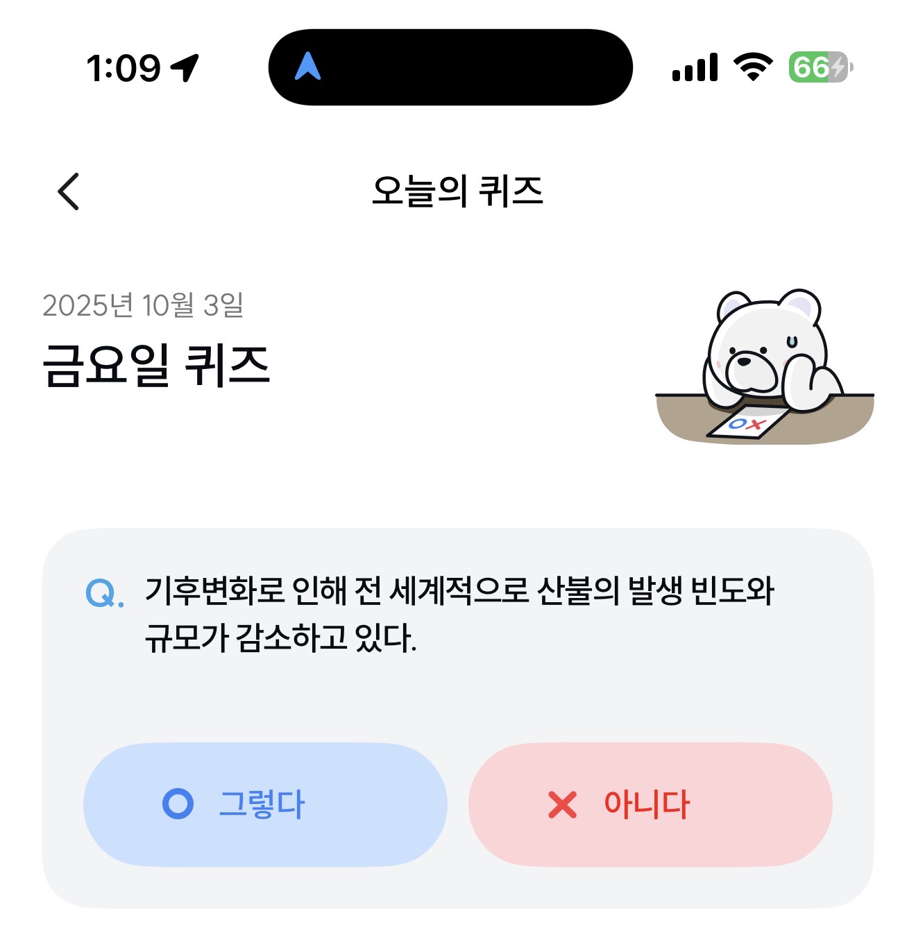기후행동 기회소득 오늘의 퀴즈 정답은 아니다 입니다