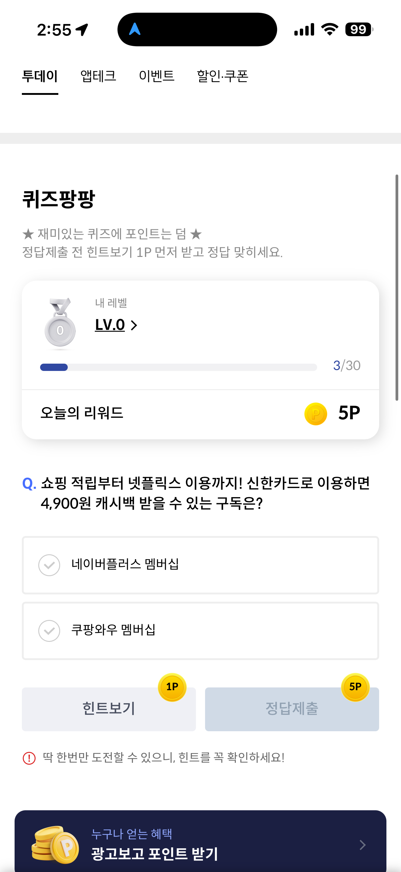 신한카드 퀴즈팡팡 정답은 네이버플러스 멤버십 입니다