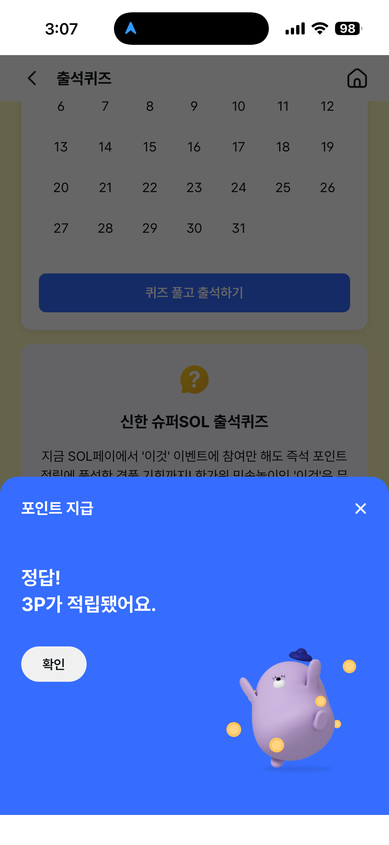 신한 슈퍼SOL 출석퀴즈 10월 4일 정답(지금 SOL페이에서 '이것' 이벤트에 참여만 해도 즉석 포인트 적립에 풍성한 경품 기회까지! 한가위 민속놀이인 '이것'은 무엇일까요?)