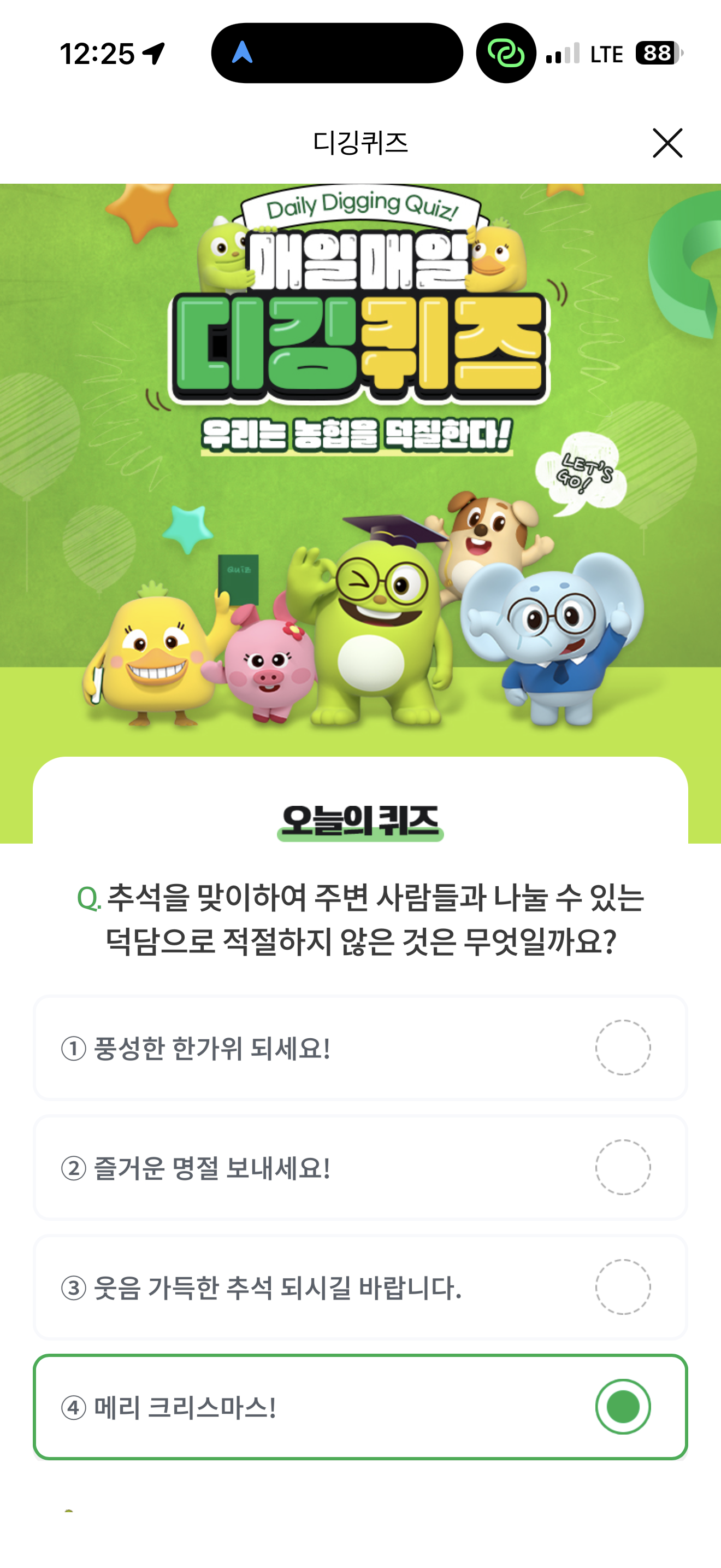 NH올원뱅크 디깅퀴즈 정답은 메리 크리스마스! 입니다