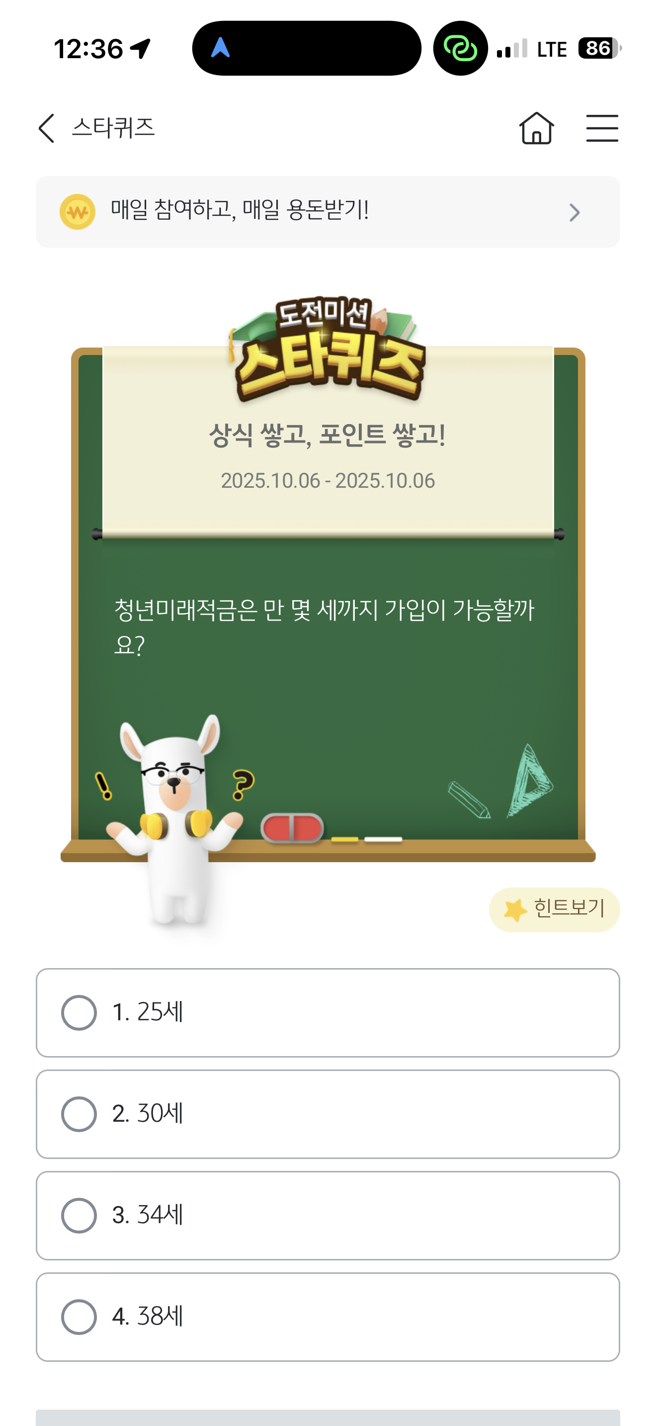 청년미래적금은 만 몇 세까지 가입이 가능할까요? 보기는 1. 25세 2. 30세 3. 34세 4. 38세 입니다. 청년미래적금으로 혜택을 제공하고 있습니다. 연령대 제한이 있는 만큼 해당 연령대에 들어가는 분들은 잘 참고해서 활용해 보세요