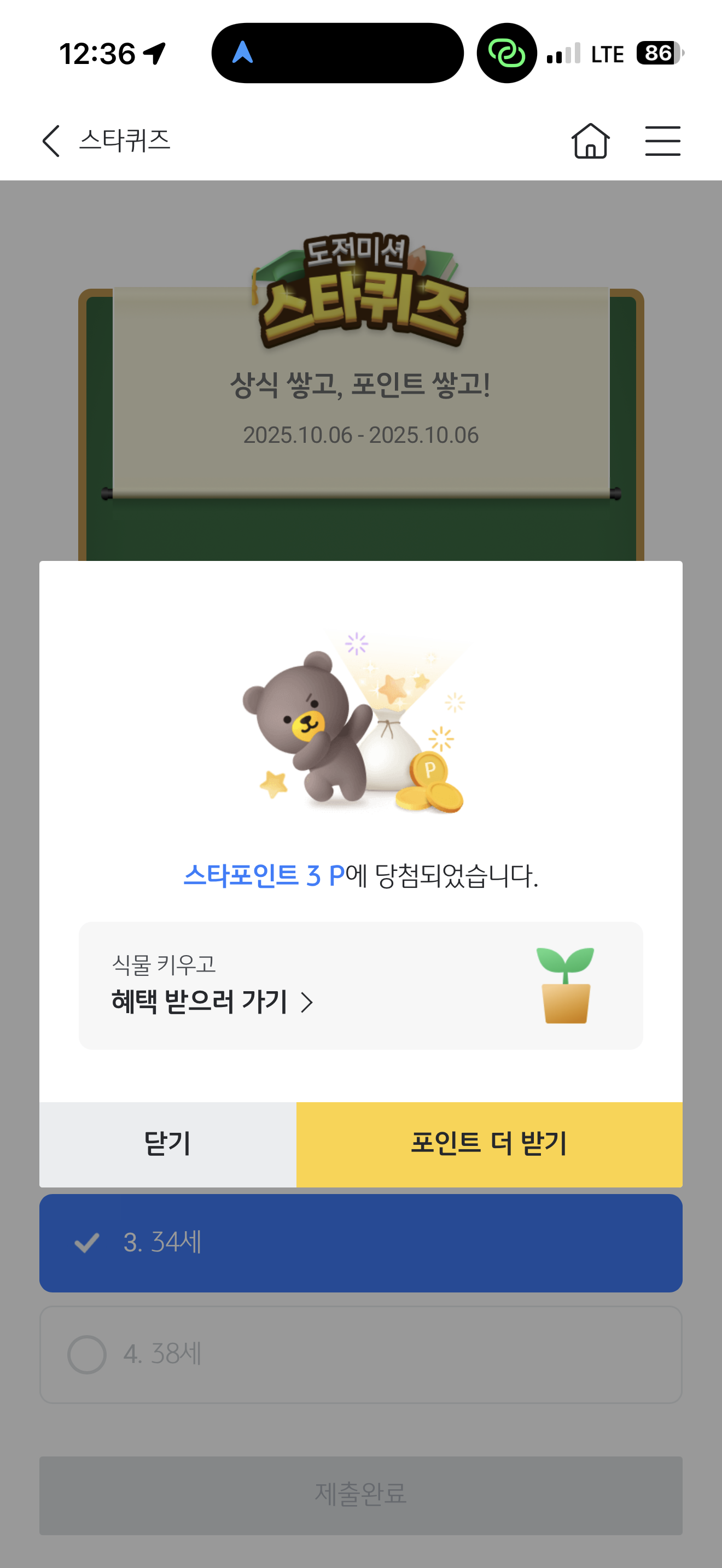 KB스타뱅킹 스타퀴즈 정답은 34세 입니다
