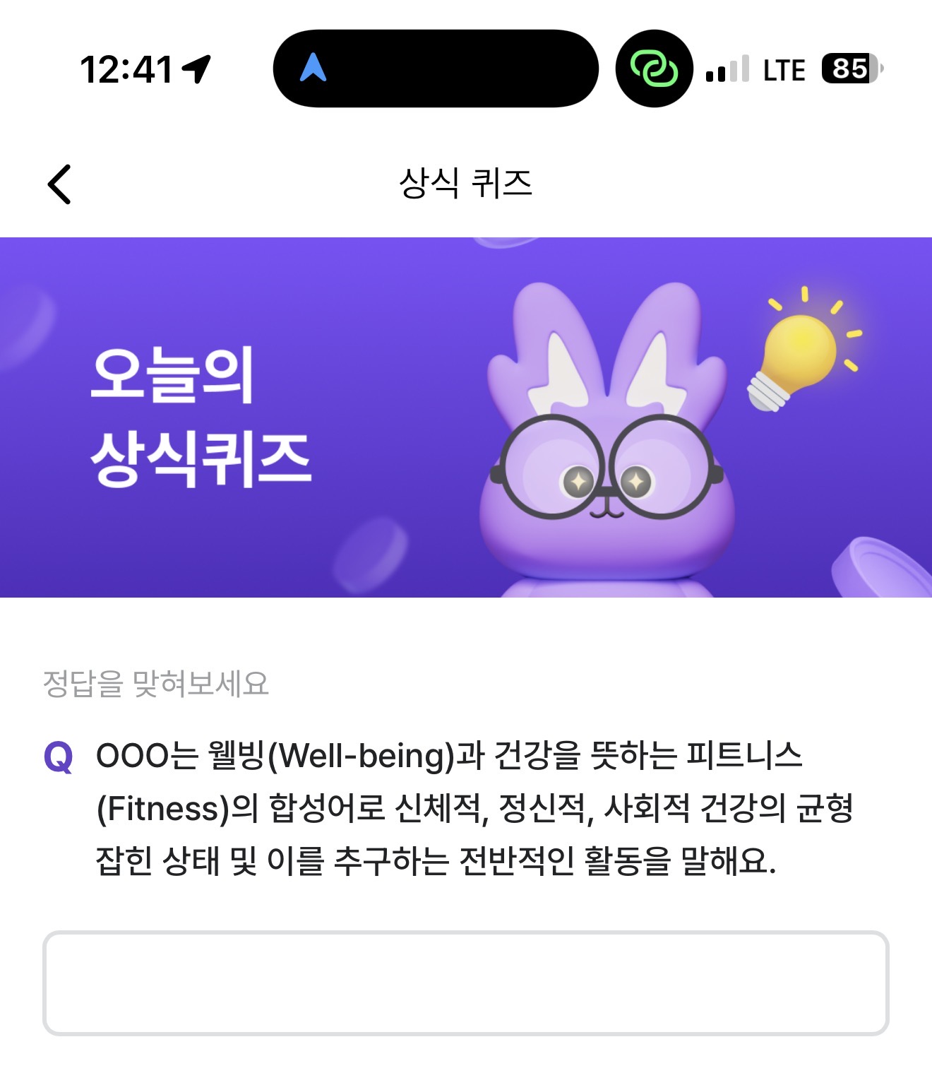비트버니 오늘의 퀴즈 10월 6일 ㅇㄴㅅ정답(OOO는 웰빙(well-being)과 건강을 뜻하는 피트니스(Fitness)의 합성어로 신체적, 정신적, 사회적 건강의 균형잡힌 상태 및 이를 추구하는 전반적인 활동을 말해요)