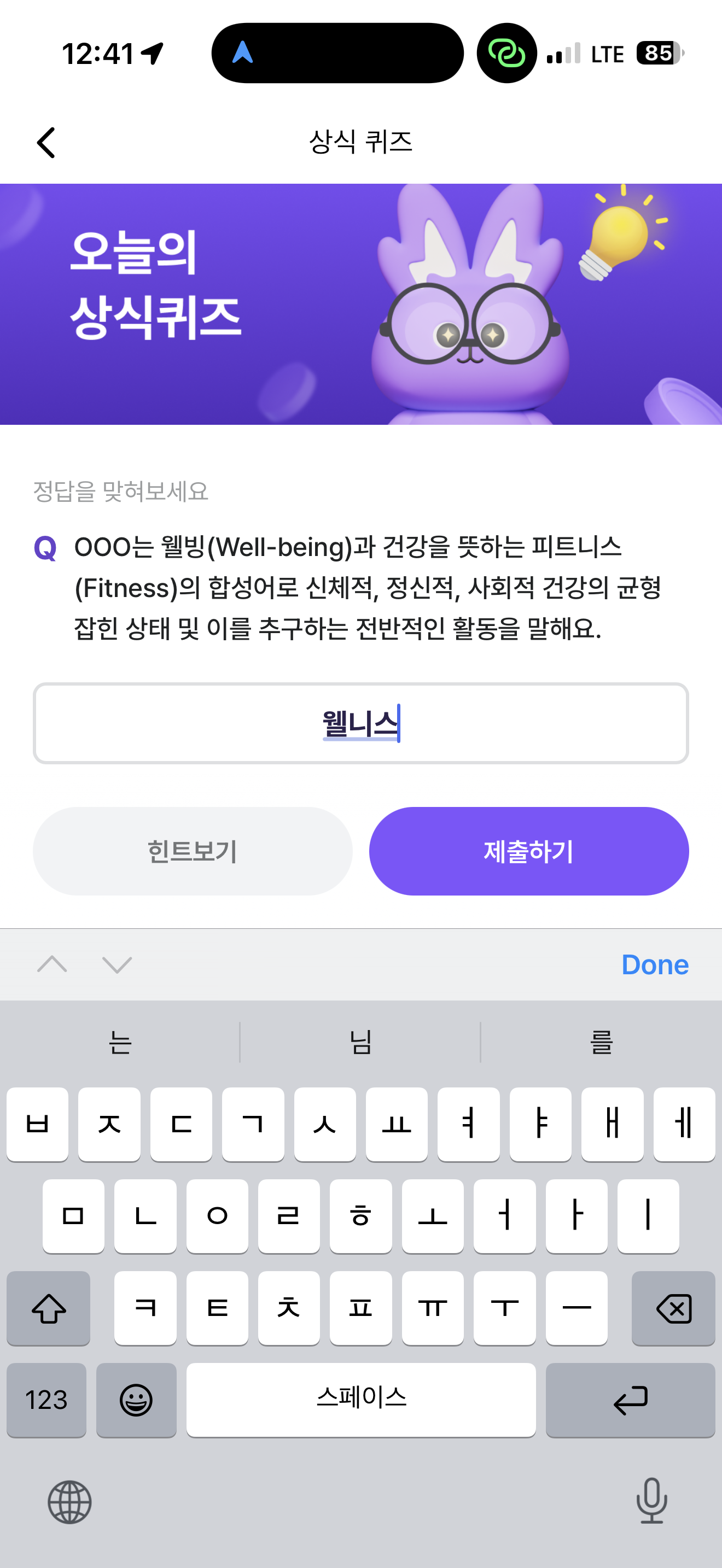 비트버니 오늘의 퀴즈 정답은 웰니스 입니다