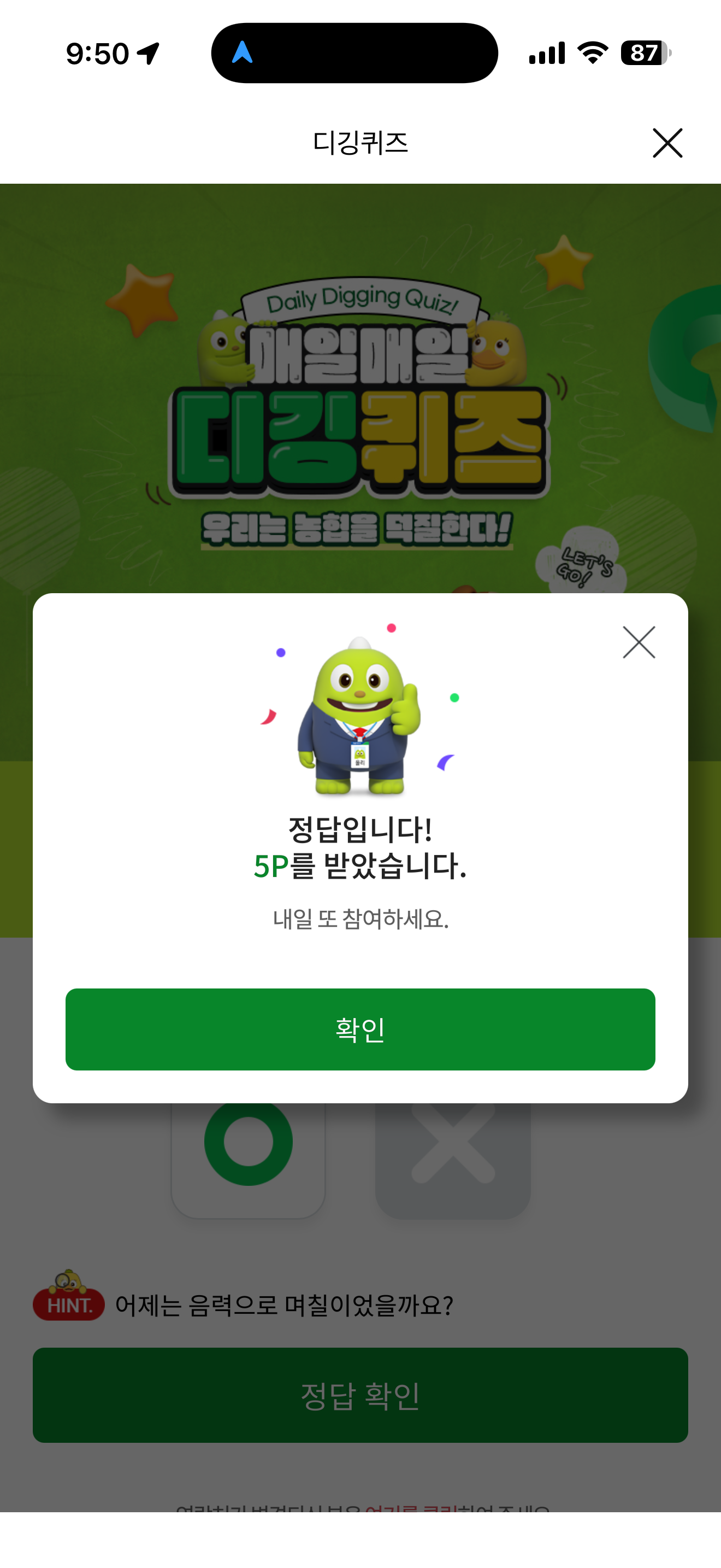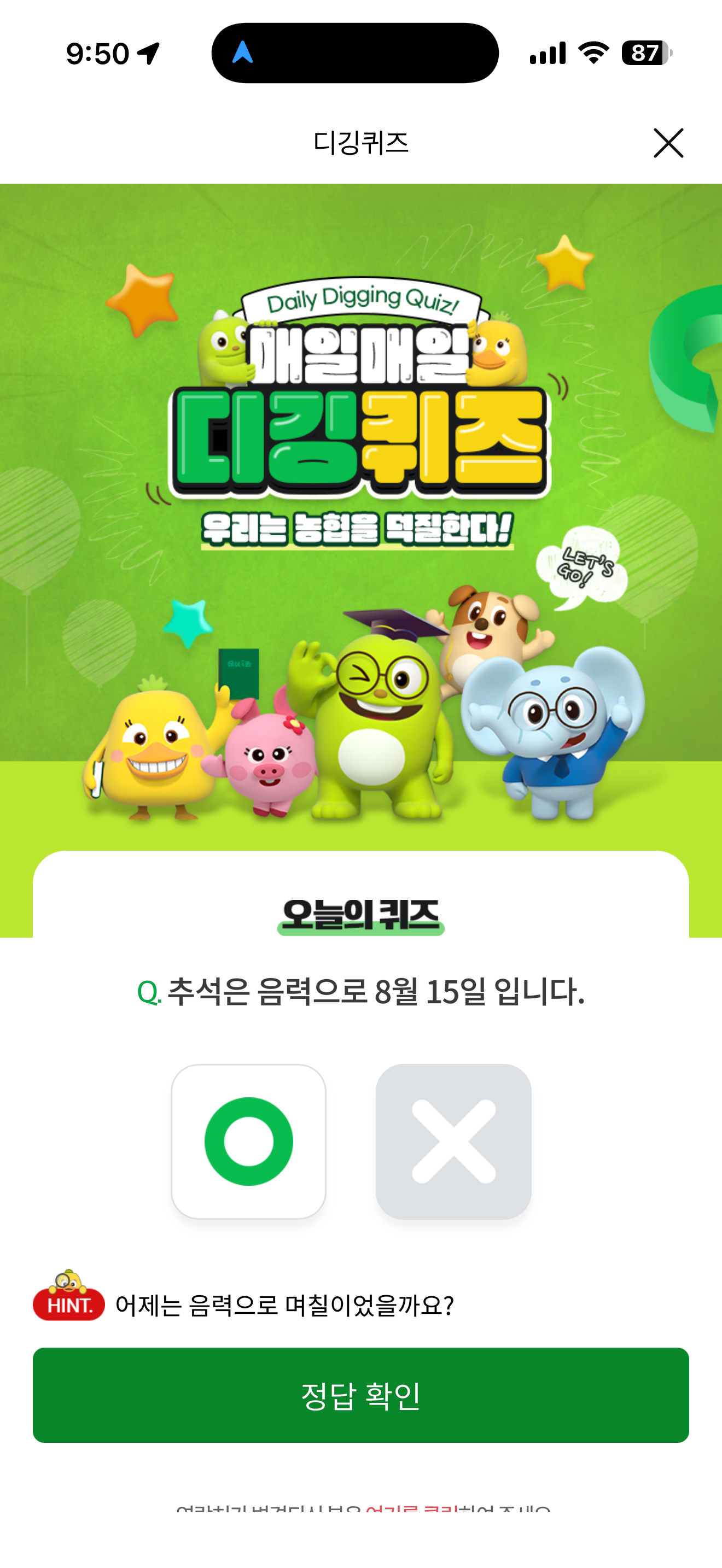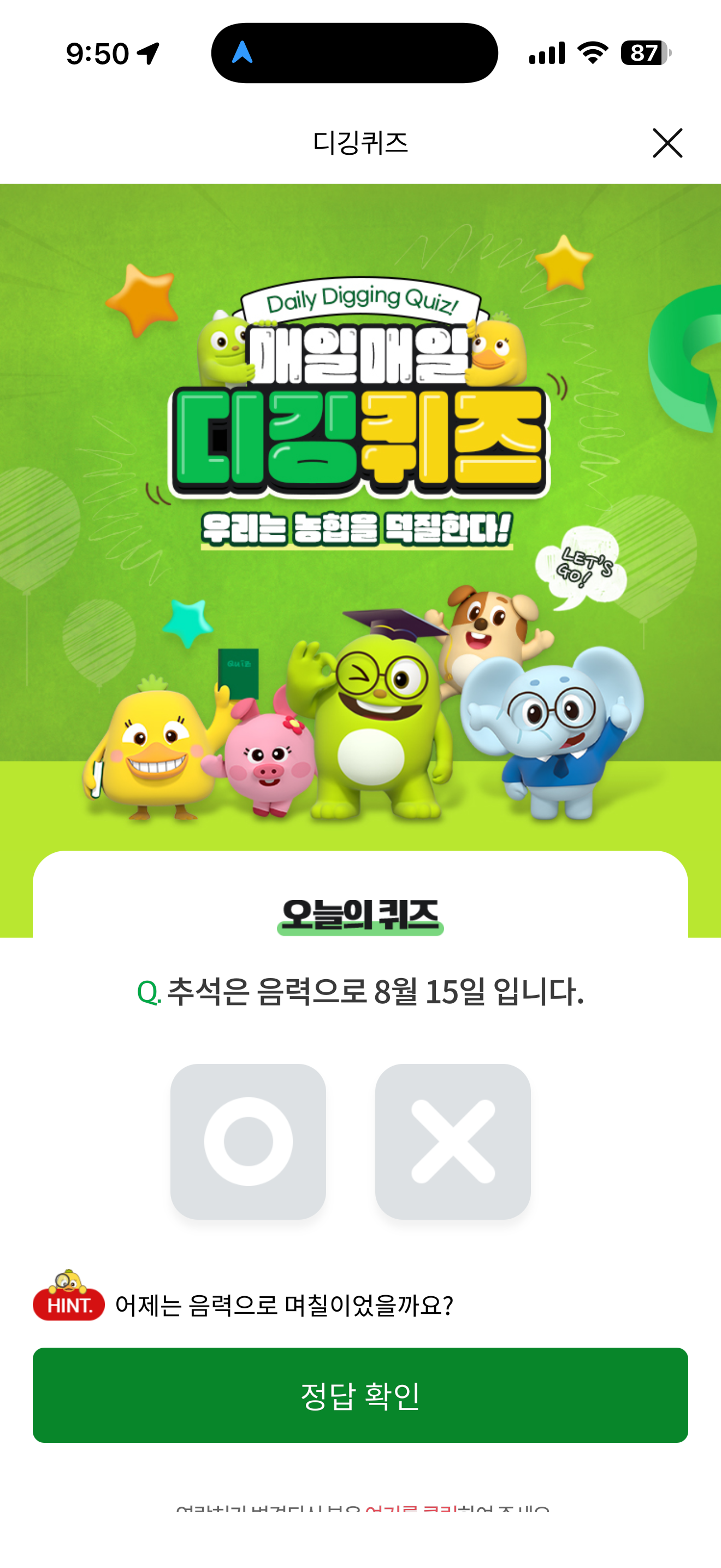 NH올원뱅크 디깅퀴즈 정답은 O 입니다
